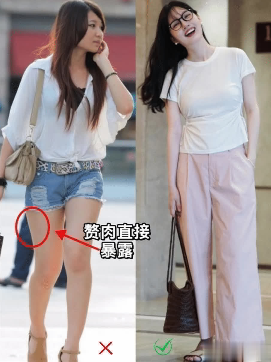 那过了50岁,在服装选择上就要慎重,因为很多服装都不适合我们了。比如说像超短裤,虽然夏季不能缺少短裤,但是这一单品却是中年女性的一大雷区。那为什么劝中年女人别穿短裤出门呢?看完下面这3组对比你就知道了~