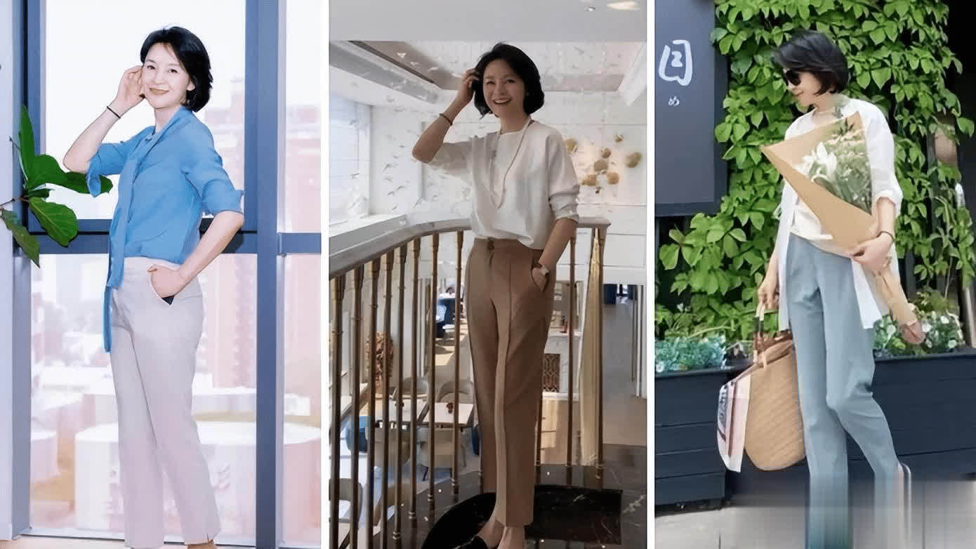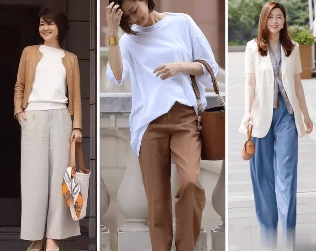 三、中年女人夏天穿裤子,这样搭很洋气!
