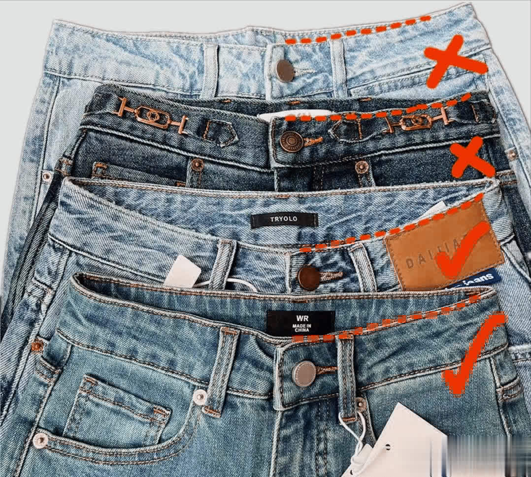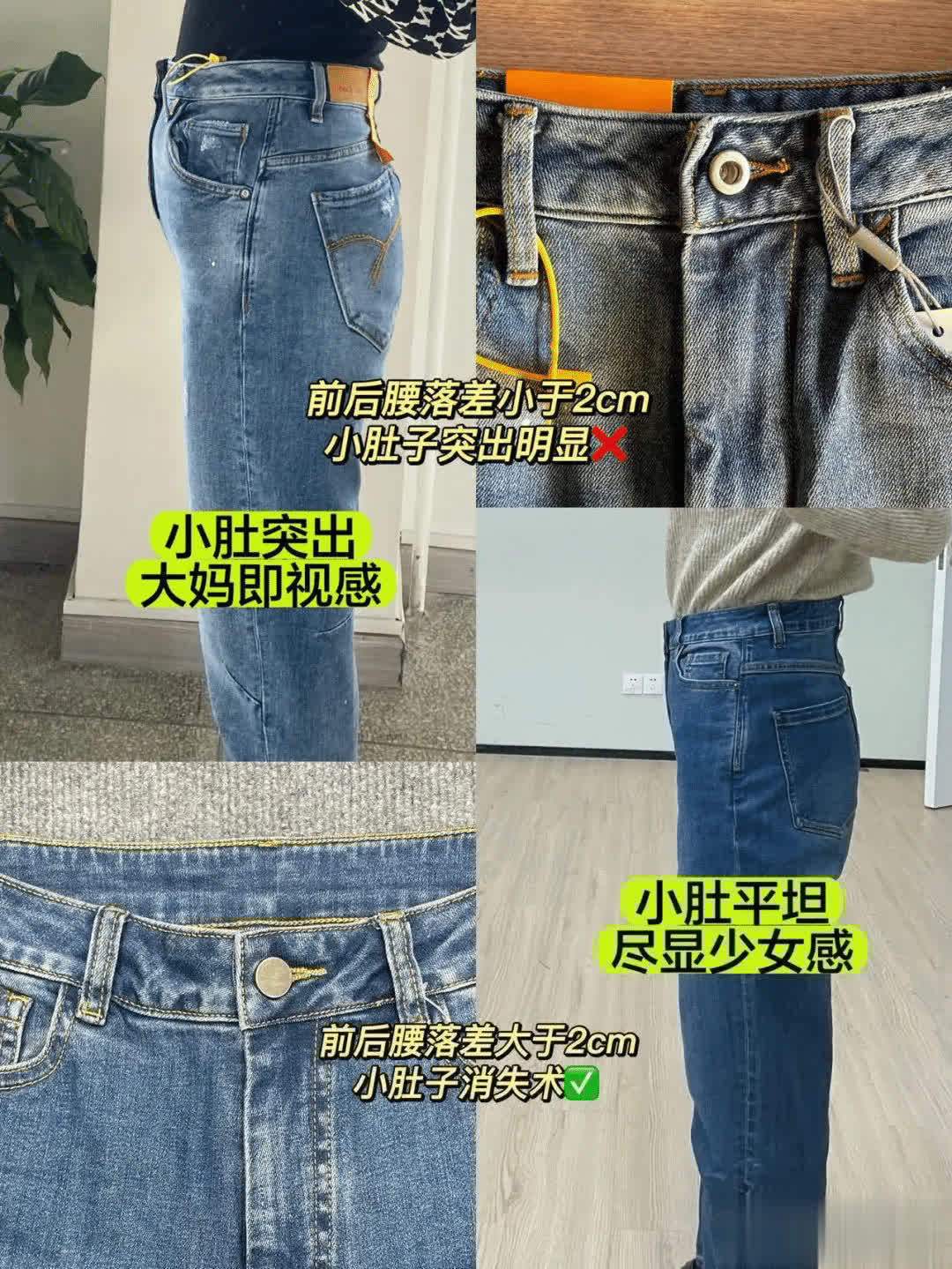 对比看一下,同一个人,穿不同前后浪的牛仔裤,对腹部的修饰效果有很大的差别。