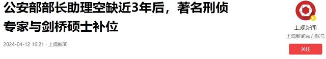 上观新闻:2024-04-12:公安部部长助理空缺近3年后,著名刑侦专家与剑桥硕士补位