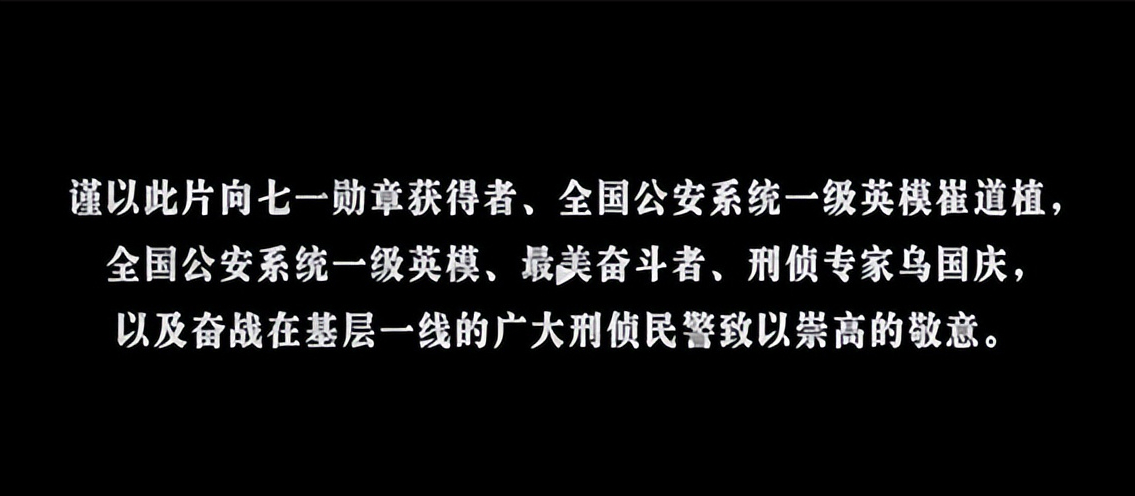 在《我是刑警》的片头中,曾出现过这样一段话:谨以此片向崔道植、乌国庆以及广大刑侦民警致以崇高的敬意。