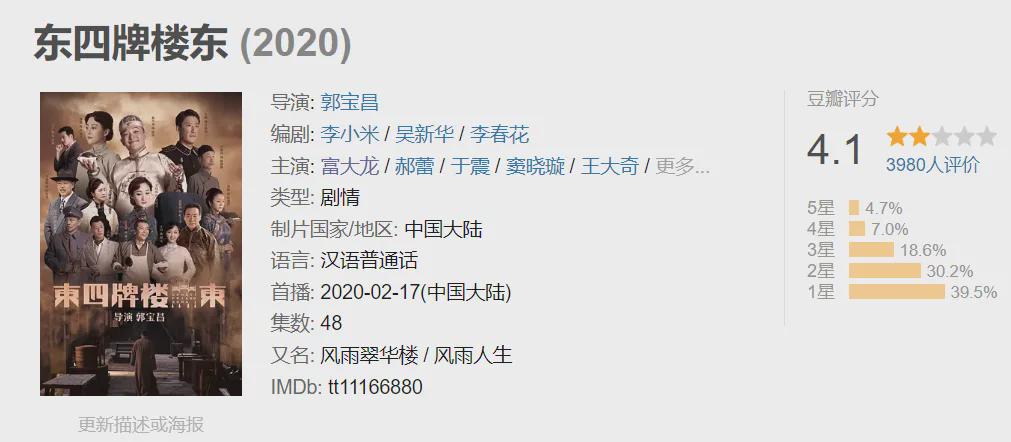 2015年以后,富大龙参演的影视剧,很多只有6分以下。