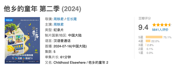 任长箴导演纪录片《他乡的童年》(第二季)豆瓣评分9.4