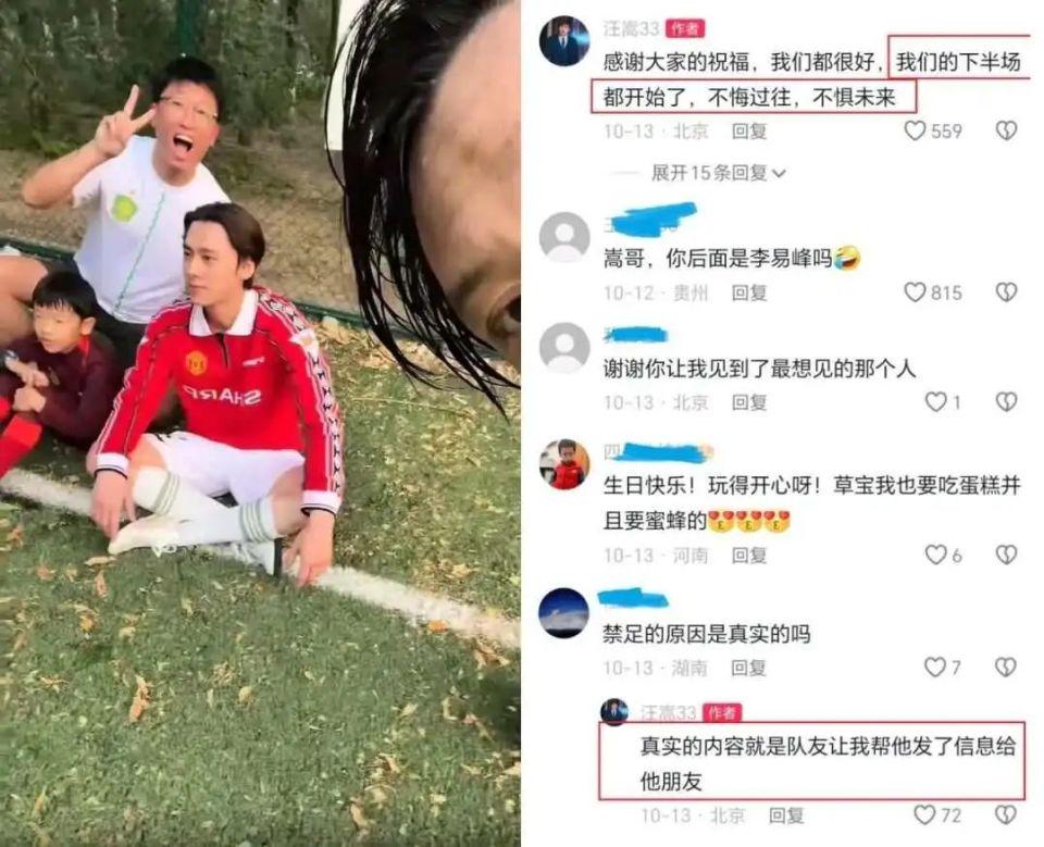 果然没过多久,被禁足的足球运动员汪嵩,就发了一段李易峰和自己踢球的视频,并说“下半场开始了”。