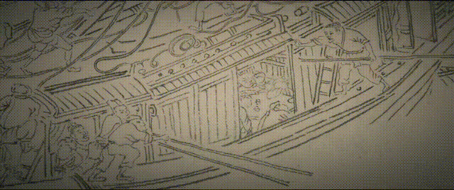 船头还安排了一个猪首人身的 “怪物” 及古怪的舞者,充满了诡异恐怖的氛围。
