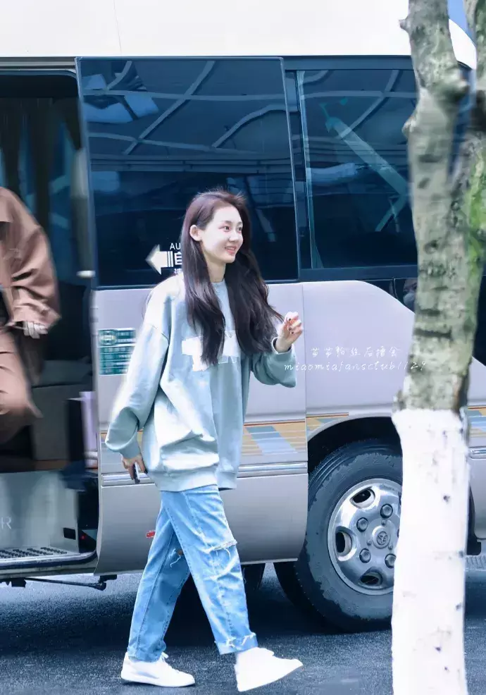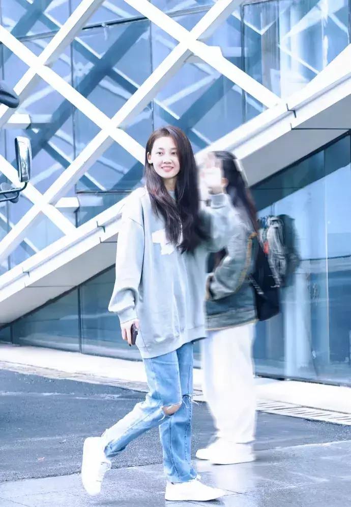 休闲风格中,苗苗喜欢宽松款卫衣和牛仔裤的搭配,温柔大气,适合日常穿着。尤其是搭配破洞牛仔裤和搭配运动鞋,休闲舒适!