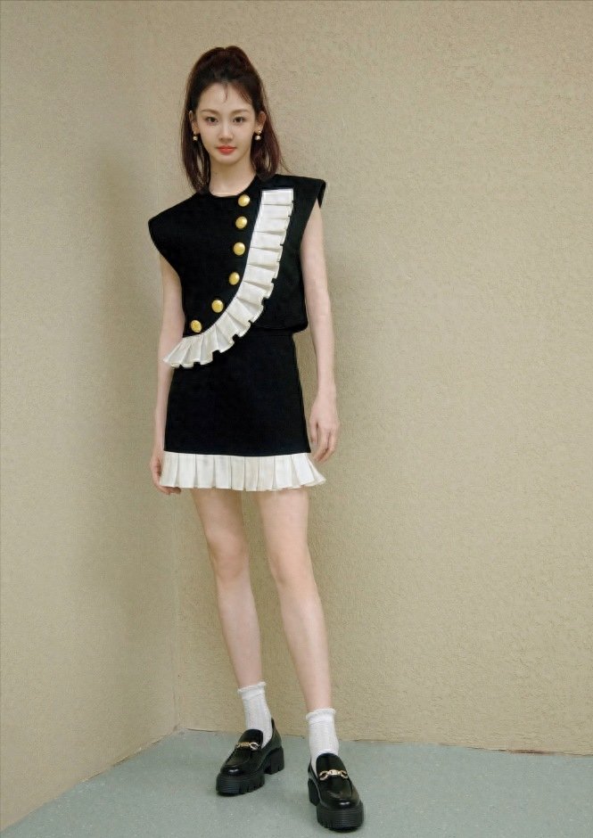 苗苗的穿搭喜欢色彩柔和,即使是黑色,但仍然偏爱清新自然、柔和的色彩,比如这款就是拼接了白色花边,颜色和白色花边符合她的淡颜系气质,给人一种温柔、甜美的感觉。
