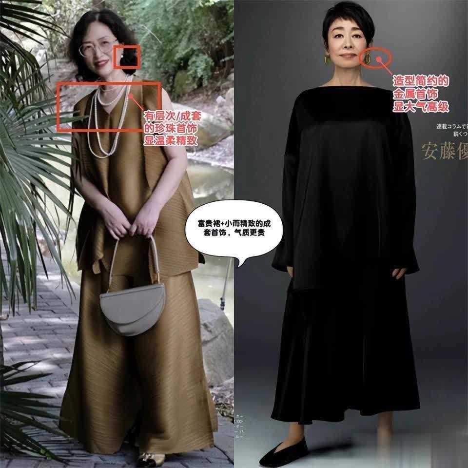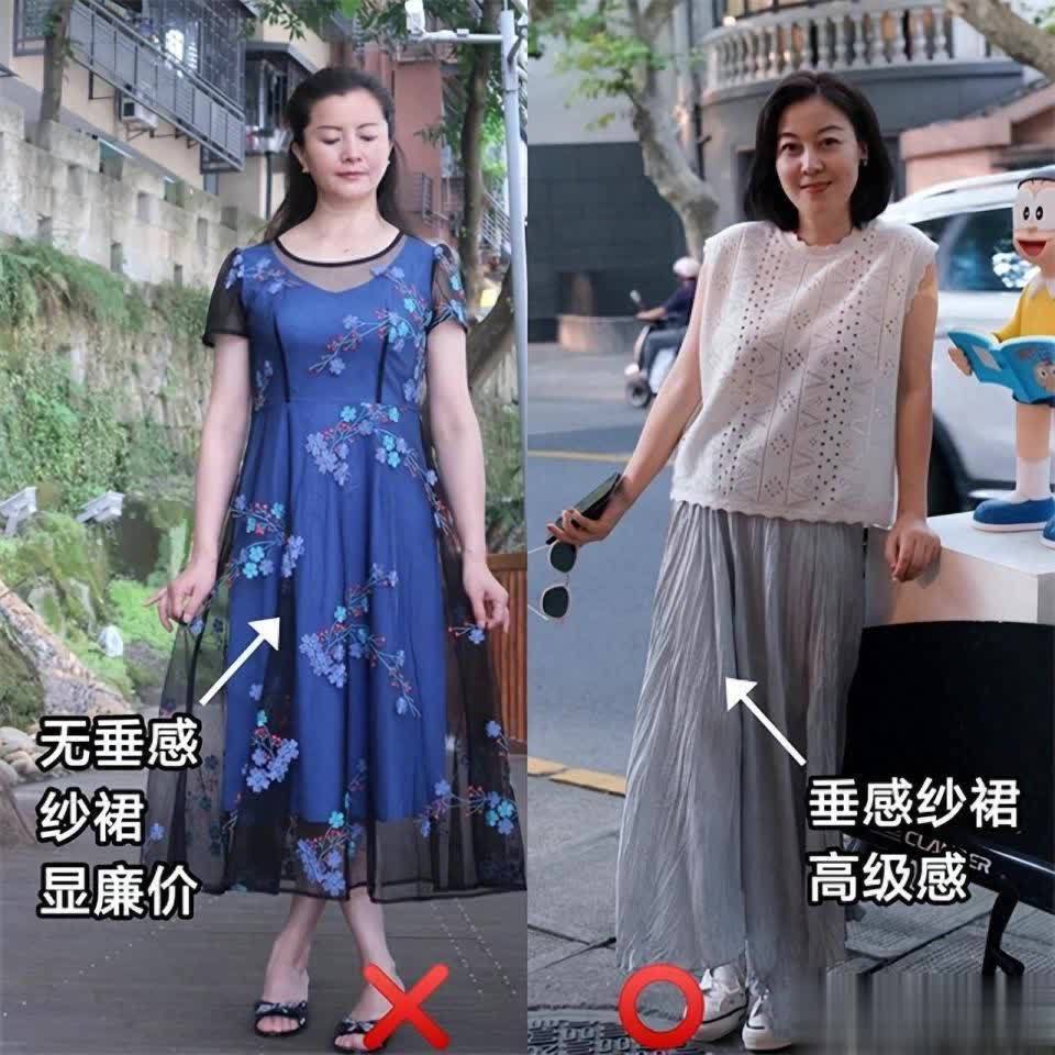 老了以后也能有品位的女人她们裙子不会有太多设计感,但是质感会很好,一条简约纯色的裙子都能让你觉得看起来很高级。那一眼假的面料便是透明的薄纱、雪纺,没有材质支撑、没有衣服的挺阔感,穿上身后和50+的气质完全不符合。