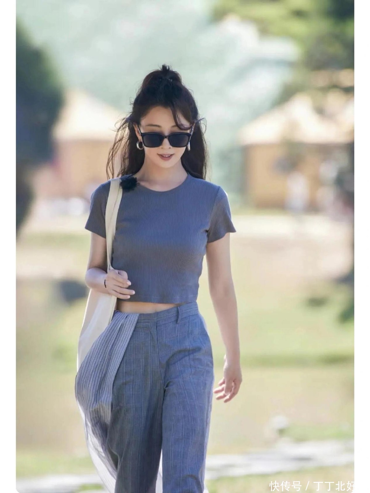 裤子的颜色给人淡雅的感觉,清凉的阔腿裤选择了会呼吸的面料,夏天穿也不热。