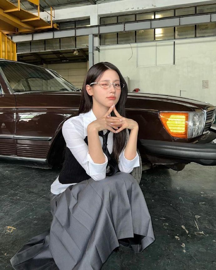 赵美延选择了一款百褶半身裙,上半身搭配白色衬衫和黑色马甲,学院风美少女看起来太city了吧!