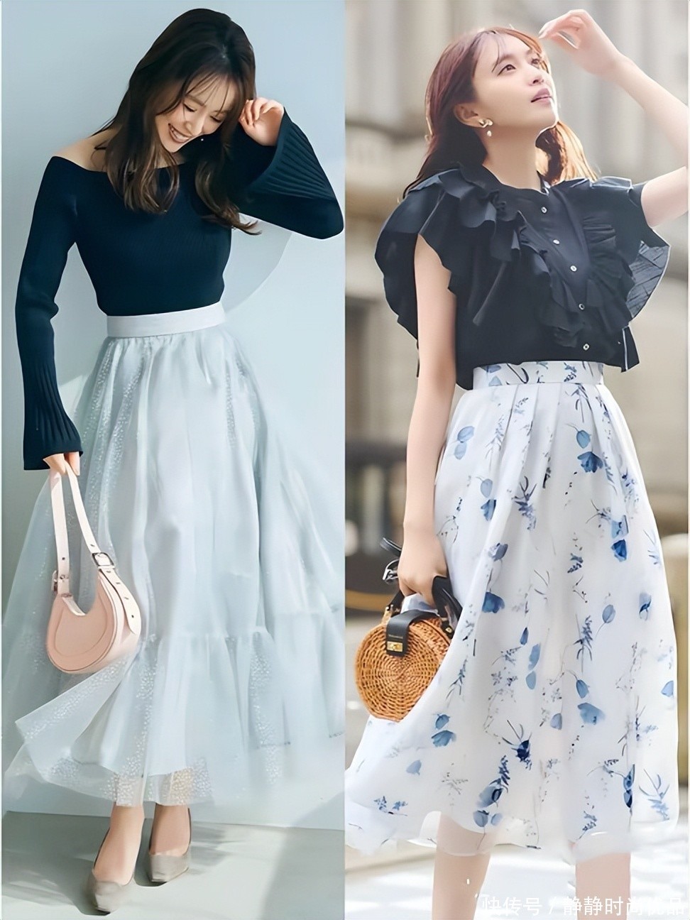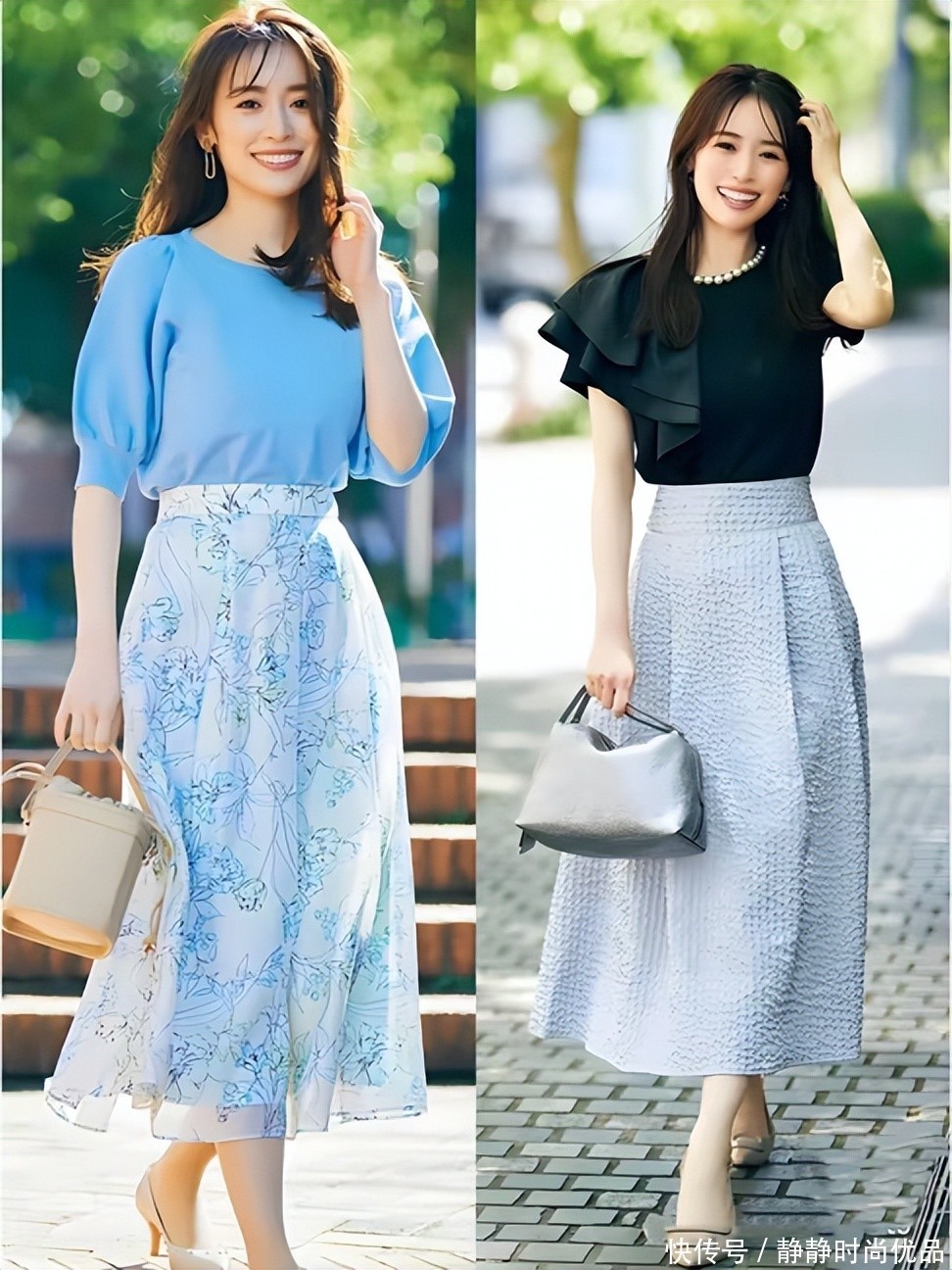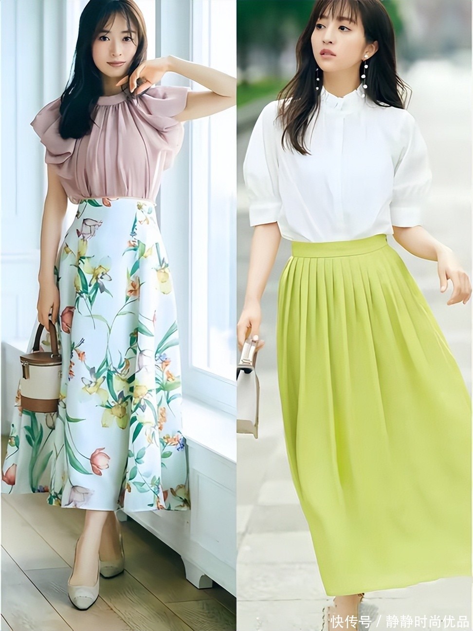 说起日本女人的裙装穿搭,从中我们可以学习到很多的搭配小技巧,上衣可以选择短款,这样的短上衣配上高腰的半身裙就可以很简单的去改善我们的身材比例,从而突出你的身材优势,展现你的大长腿。