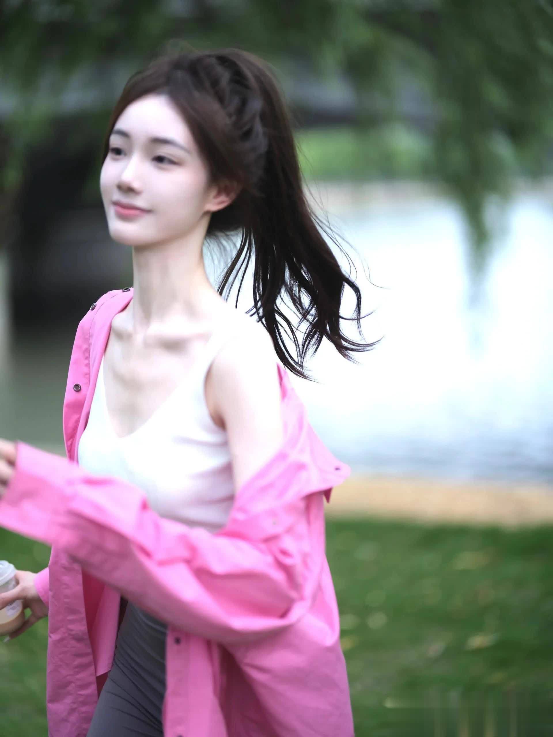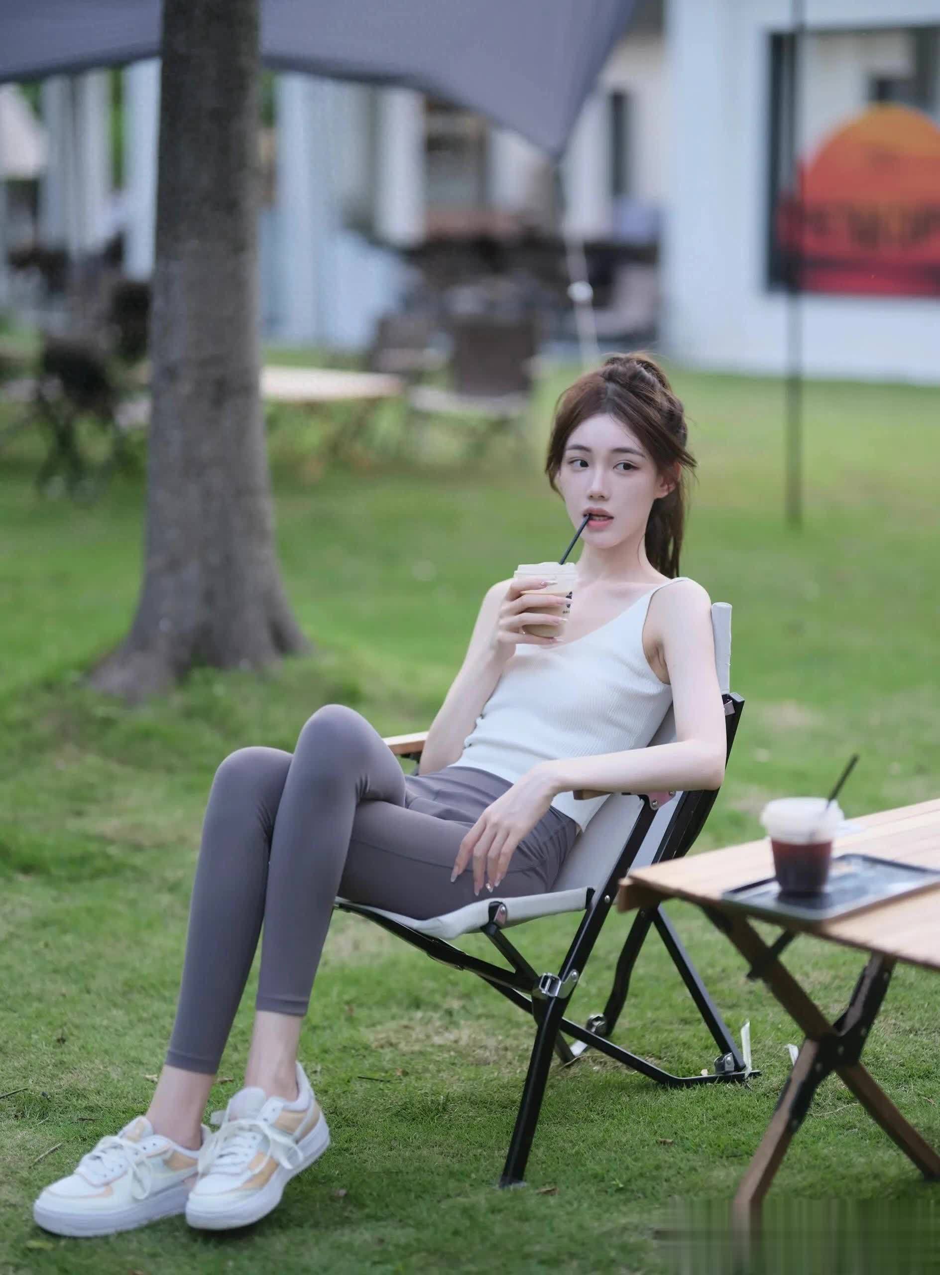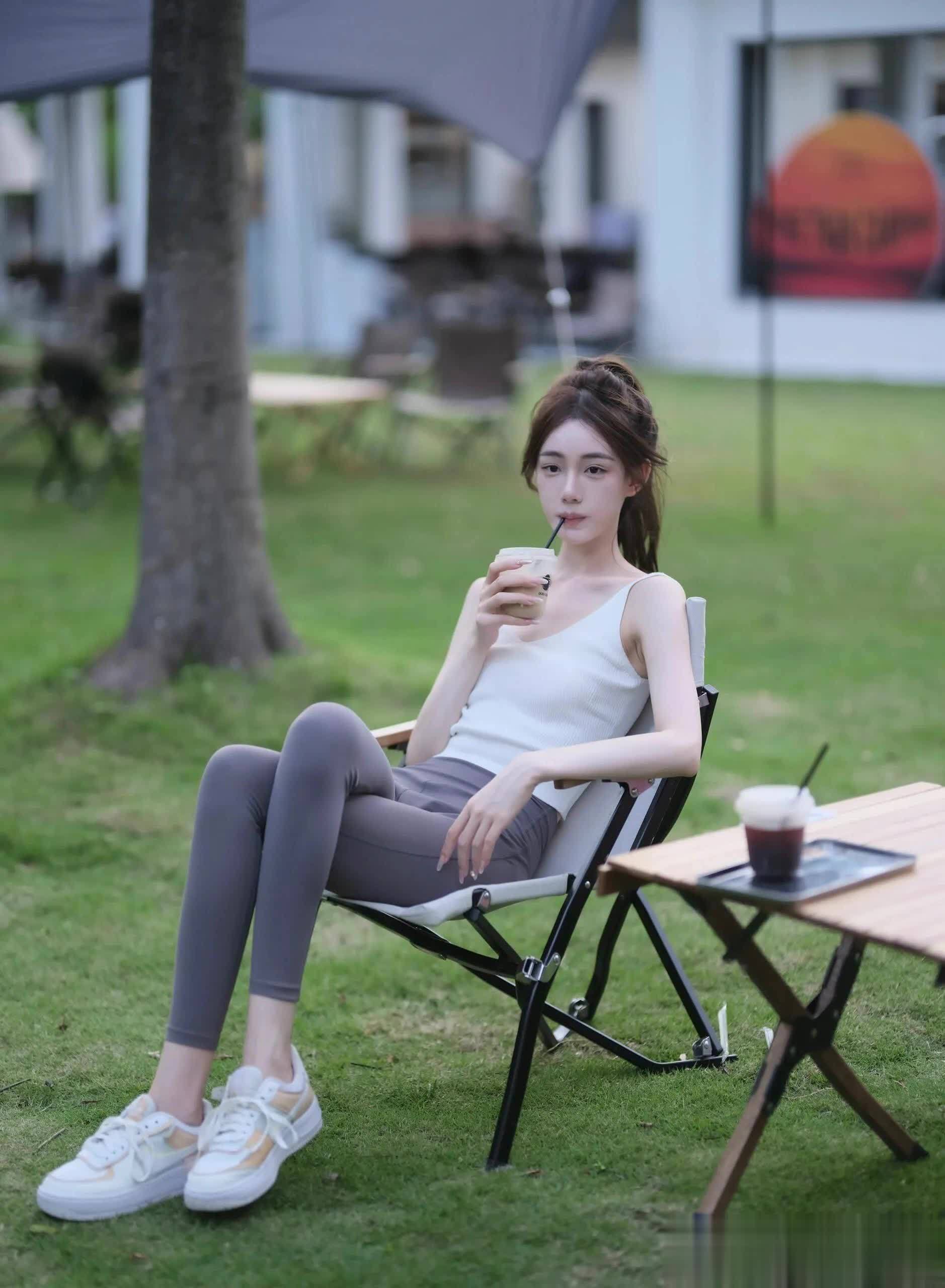 小惟的装扮简单而不失格调。白色背心搭配灰色紧身裤,简约而不失时尚感,展现出她独特的品味。白色运动鞋的点缀,更是增添了几分青春的活力。她的头发被轻轻地梳成了一个马尾辫,随风轻轻摇曳,显得既休闲又自在。