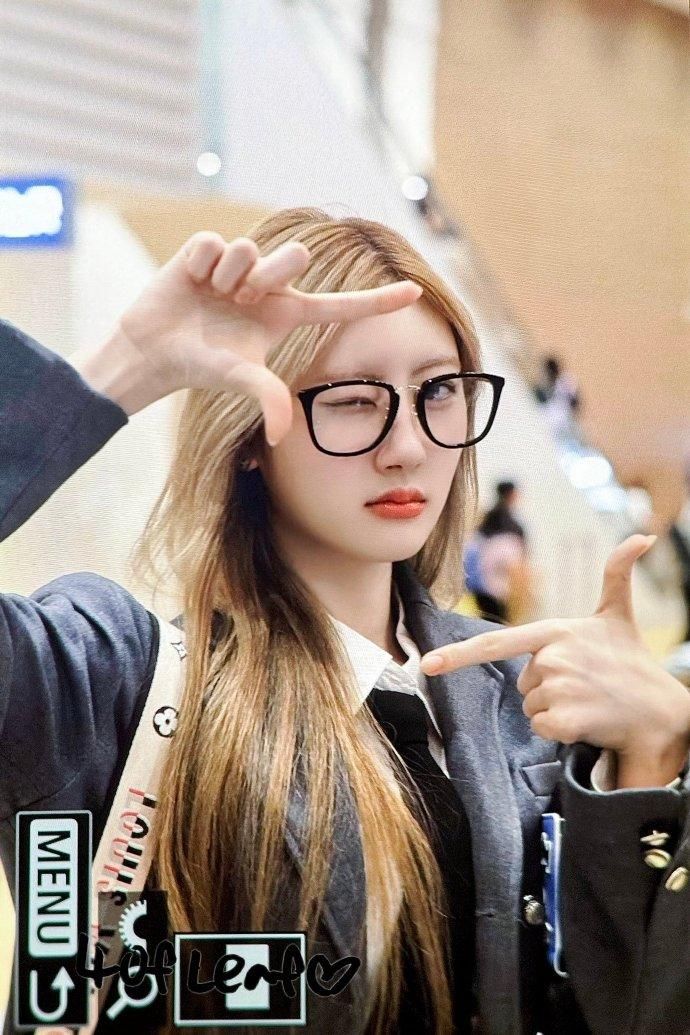 眼镜与蓝色美瞳的组合,是RAMI此次造型的点睛之笔。眼镜的加持,不仅为她平添了几分书卷气,更让那双眼睛显得更加深邃而迷人。蓝色美瞳则如同夜空中最亮的星,为她的眼眸增添了一抹梦幻色彩,使得整个人的气质瞬间提升,既文艺又可爱,仿佛一个从童话中走出的精致洋娃娃。