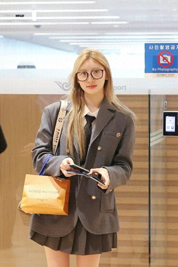 韩国爱豆RAMI被称为“小肉色人”,她以一身经典的学院风装扮惊艳亮相,仿佛是从校园剧中走出的女主角,温柔而坚定地踏入了时尚的聚光灯下。灰色学院风西装外套,剪裁利落,线条流畅,既保留了传统学院装的严谨与正式,又巧妙地融入了现代时尚的休闲元素,展现出一种独特的知性美。搭配同色系灰色百褶裙,裙摆随风轻扬,不仅勾勒出她修长的双腿,更添了几分灵动与俏皮。