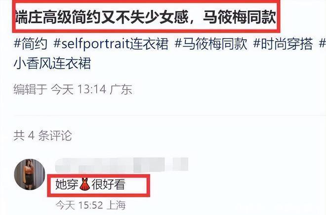 不少网友表示马筱梅这件粉色裙子好漂亮,高级简约又不失少女感。随后店家晒出同款称根本不敢发出来,因为一发出来就会卖断货。
