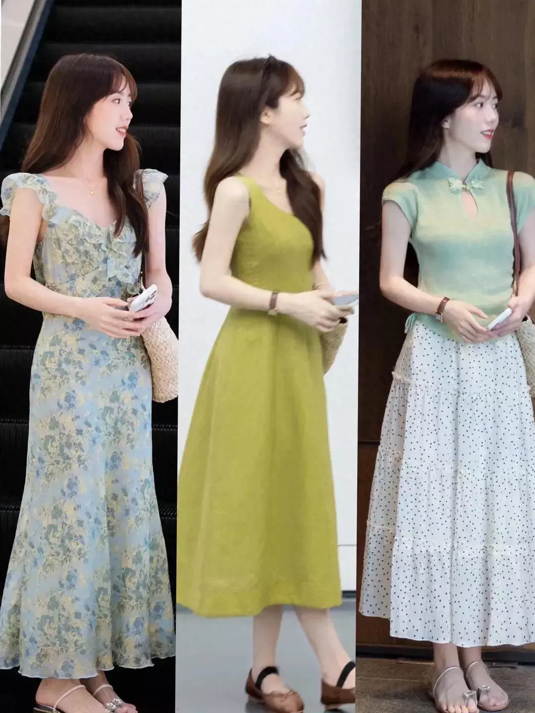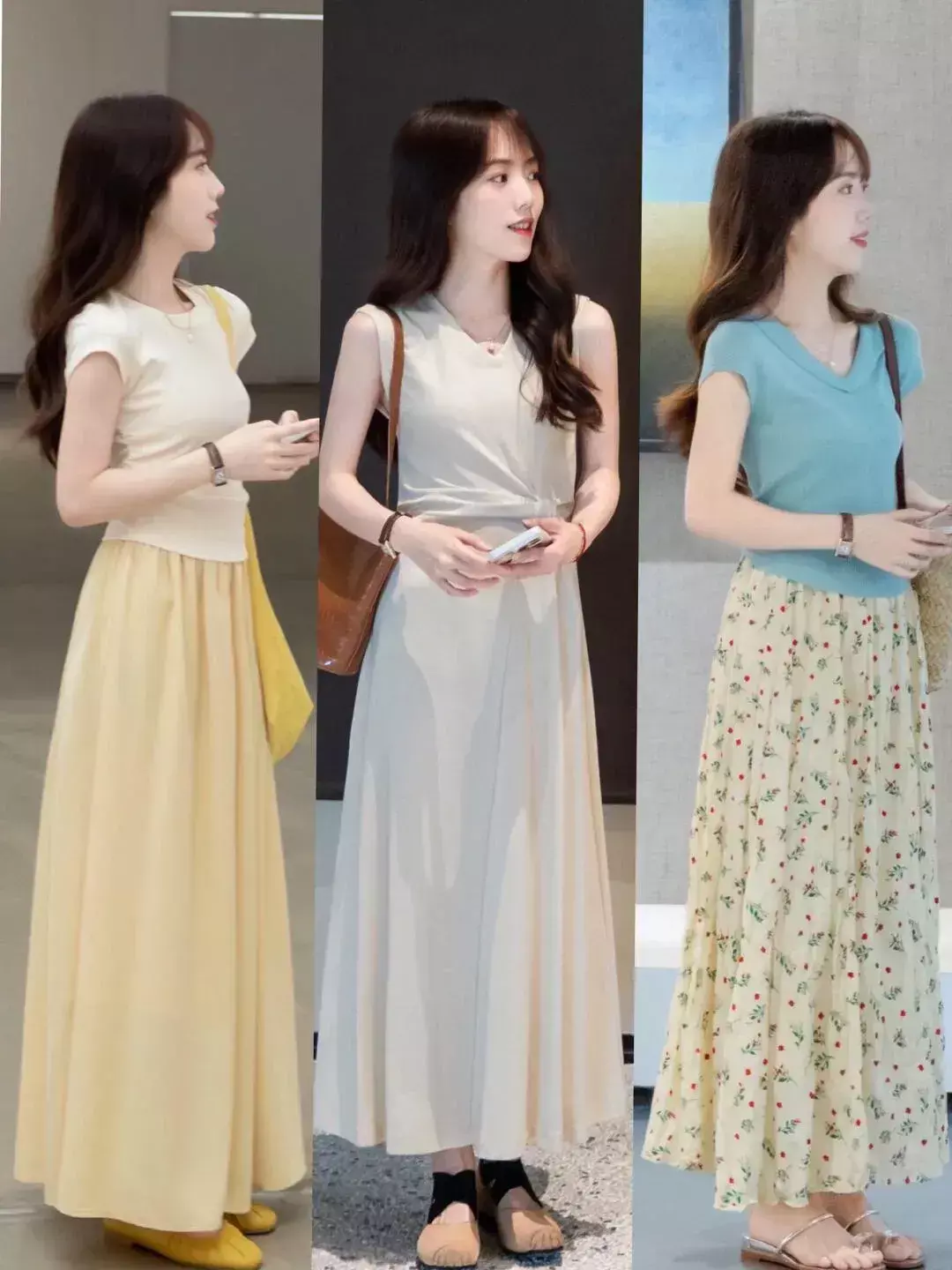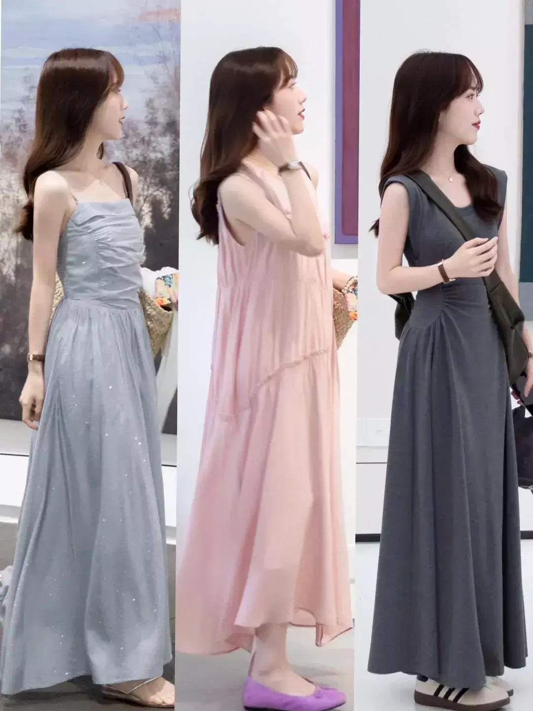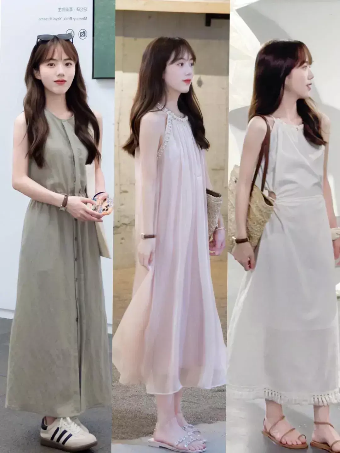 像是在闷热的夏天,各种各样的背心裙,吊带裙,挂脖连衣裙都是比较常见的,不仅氛围感强,而且能够展现女性的温柔与优雅气质,选择不同款式不同颜色的各种长裙出行,既温柔又洋气。