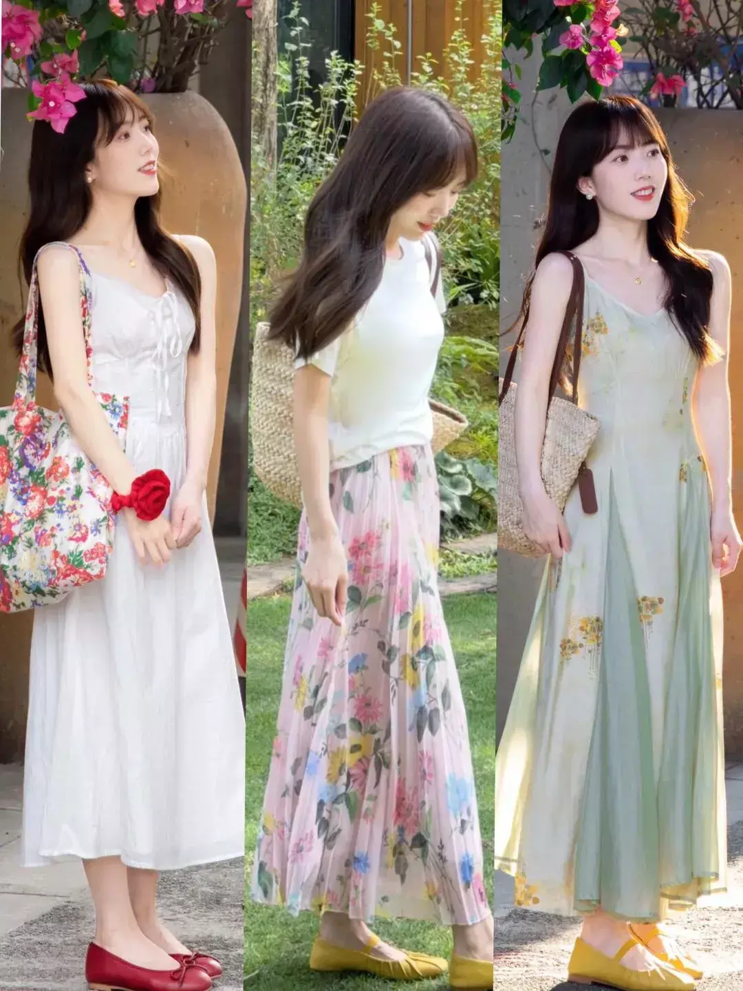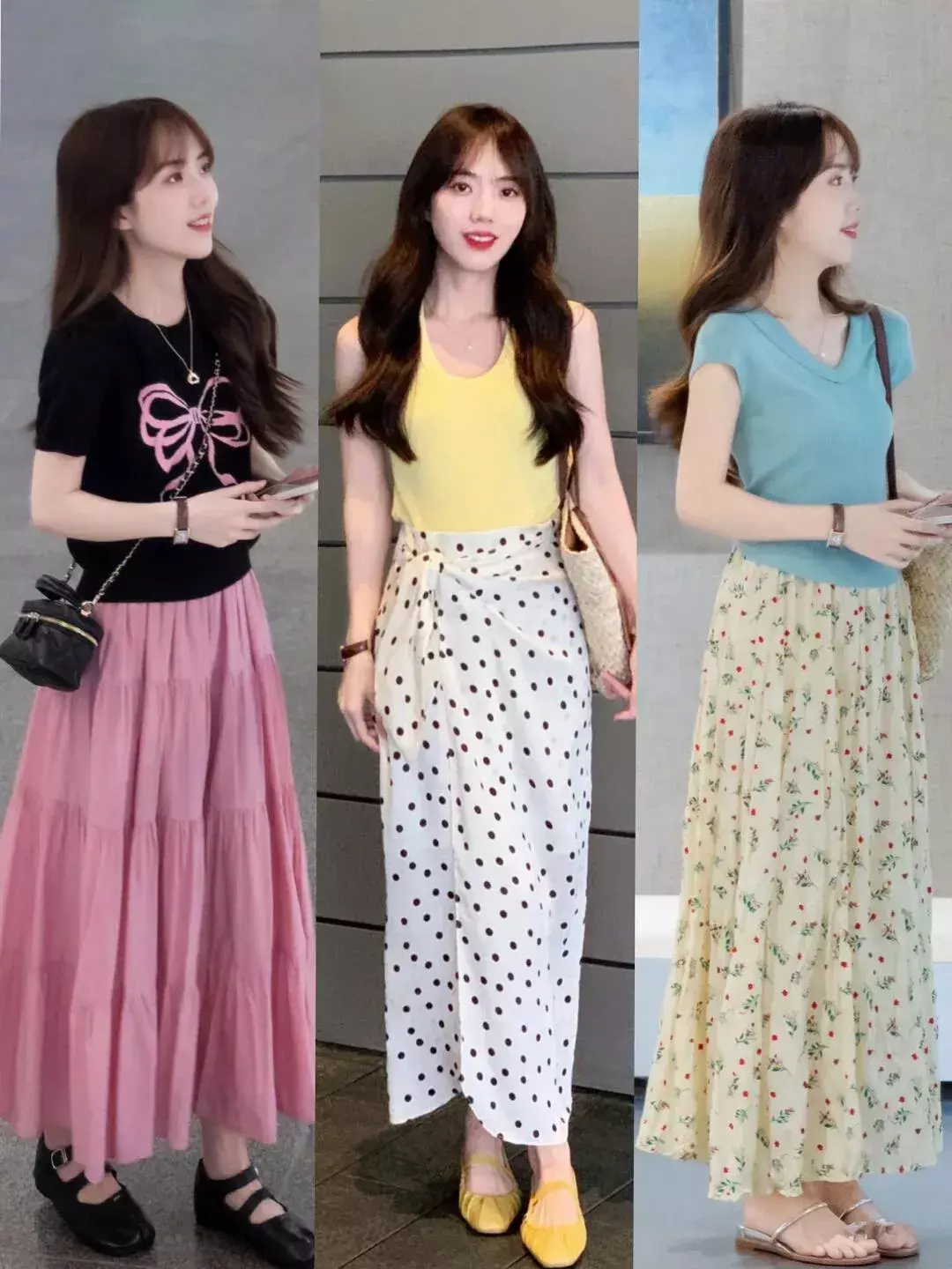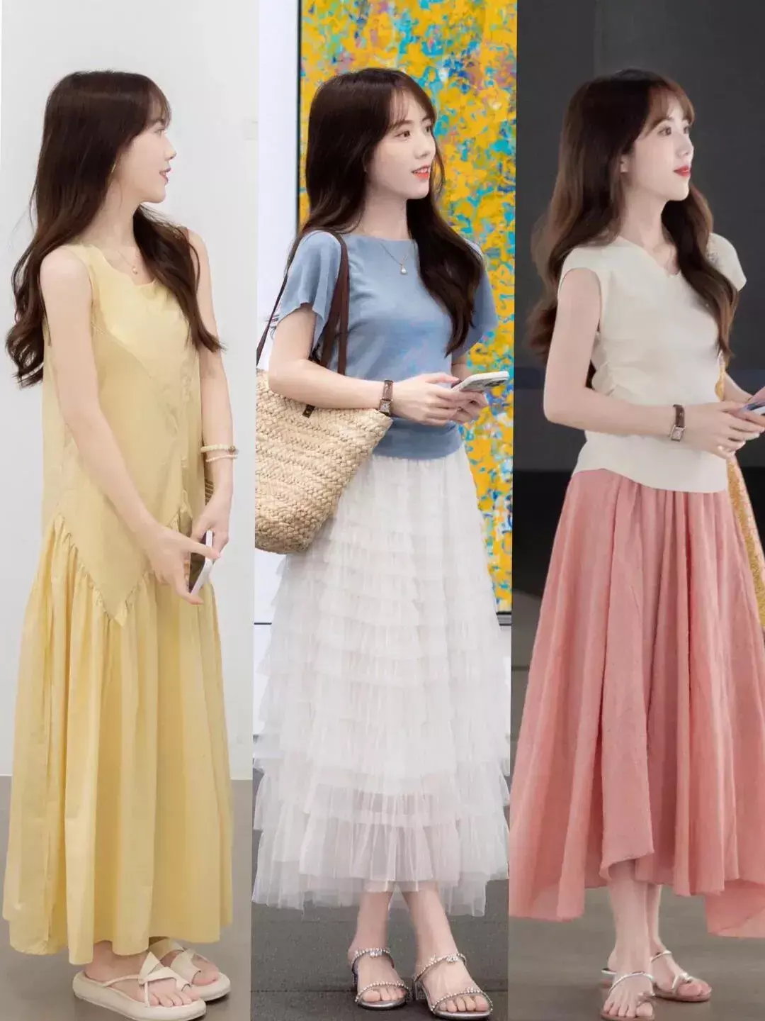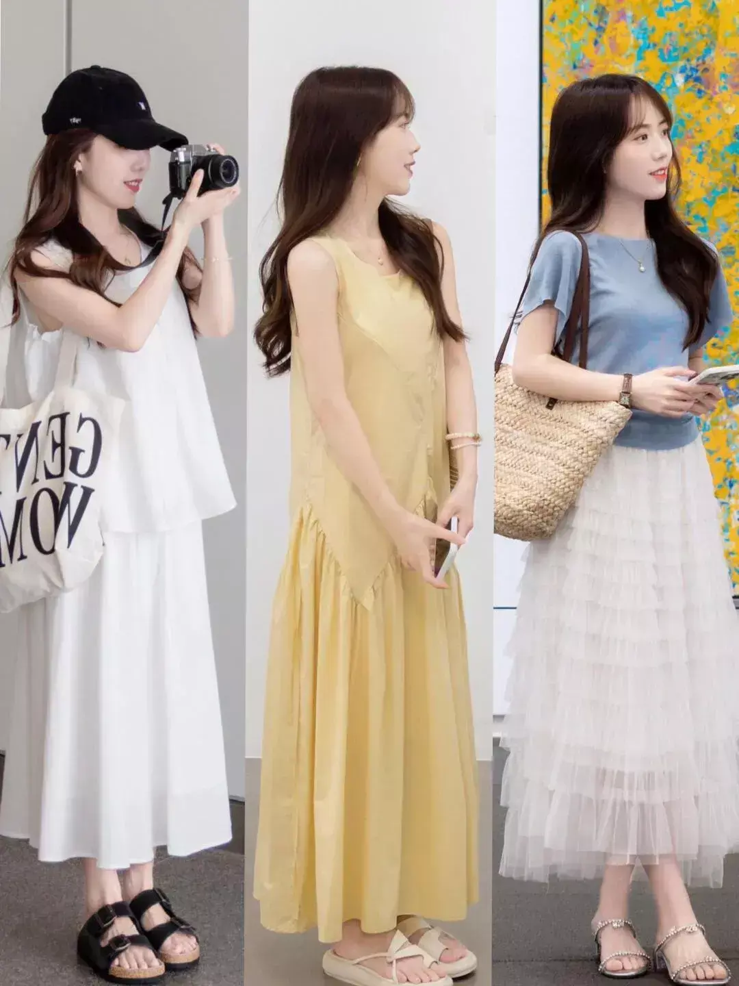 像是在闷热的夏天,各种各样的背心裙,吊带裙,挂脖连衣裙都是比较常见的,不仅氛围感强,而且能够展现女性的温柔与优雅气质,选择不同款式不同颜色的各种长裙出行,既温柔又洋气。