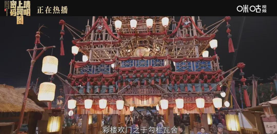 剧组查阅了大量的资料和古画,反复与专家论证后,复原了一个8000平米供古人玩耍的勾栏瓦舍。