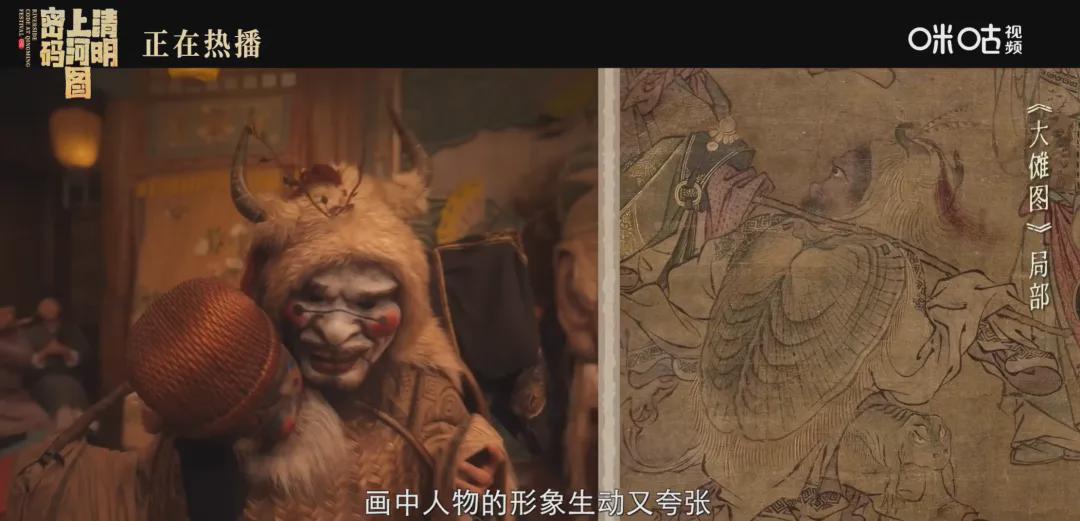 在《清明上河图密码》第一集中,赵不尤处理妻子“误杀”的恶人尸体时,把尸体装进了表演道具内,随即,误入《群妖博魅》舞台。