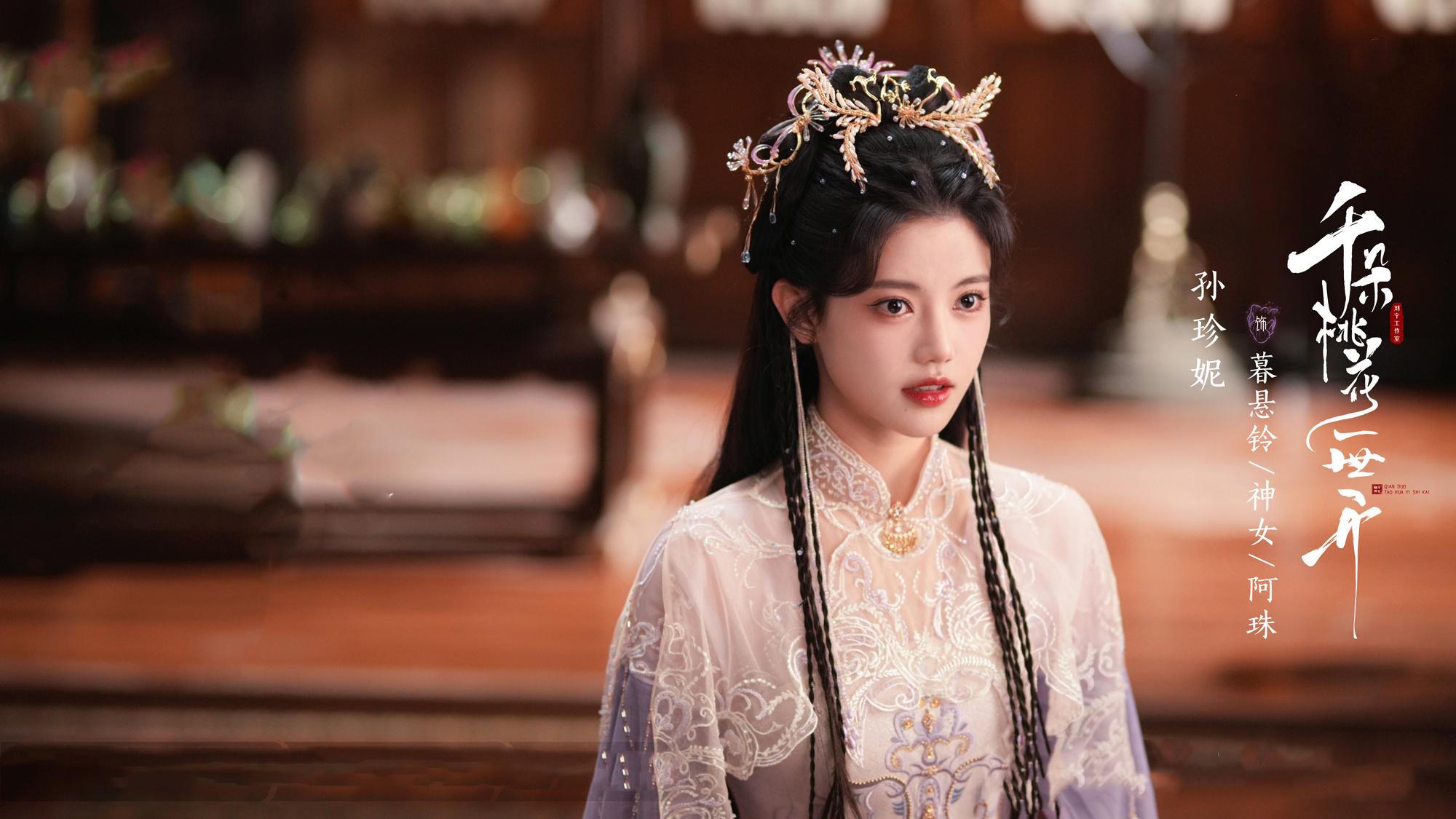 作为自己爆火后出演的首部古装女主剧,孙珍妮在《千朵桃花一世开》中有着黑白两种风格的造型,黑色苗疆风格下的酷飒,白衣神女造型下的仙气飘飘,都非常的惊艳。