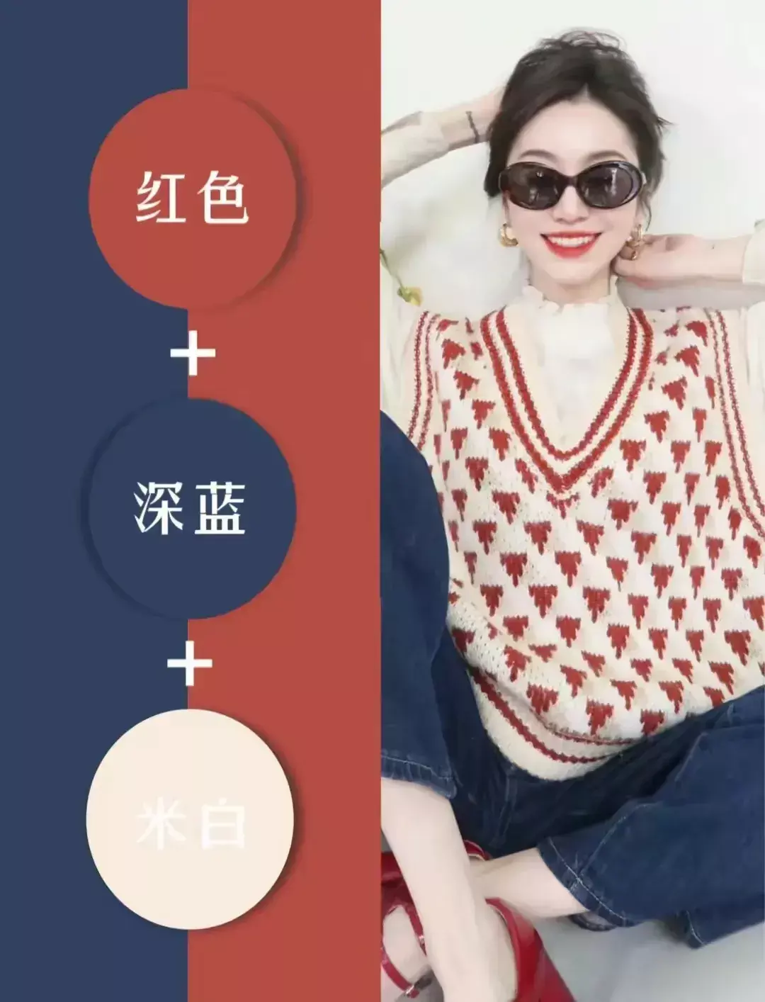 下面这一层窗一配色就更显气质了,红色搭配上蓝色的裤子和一件米白色的衬衫,复古洋气秒变成千金小姐,高级又显贵。