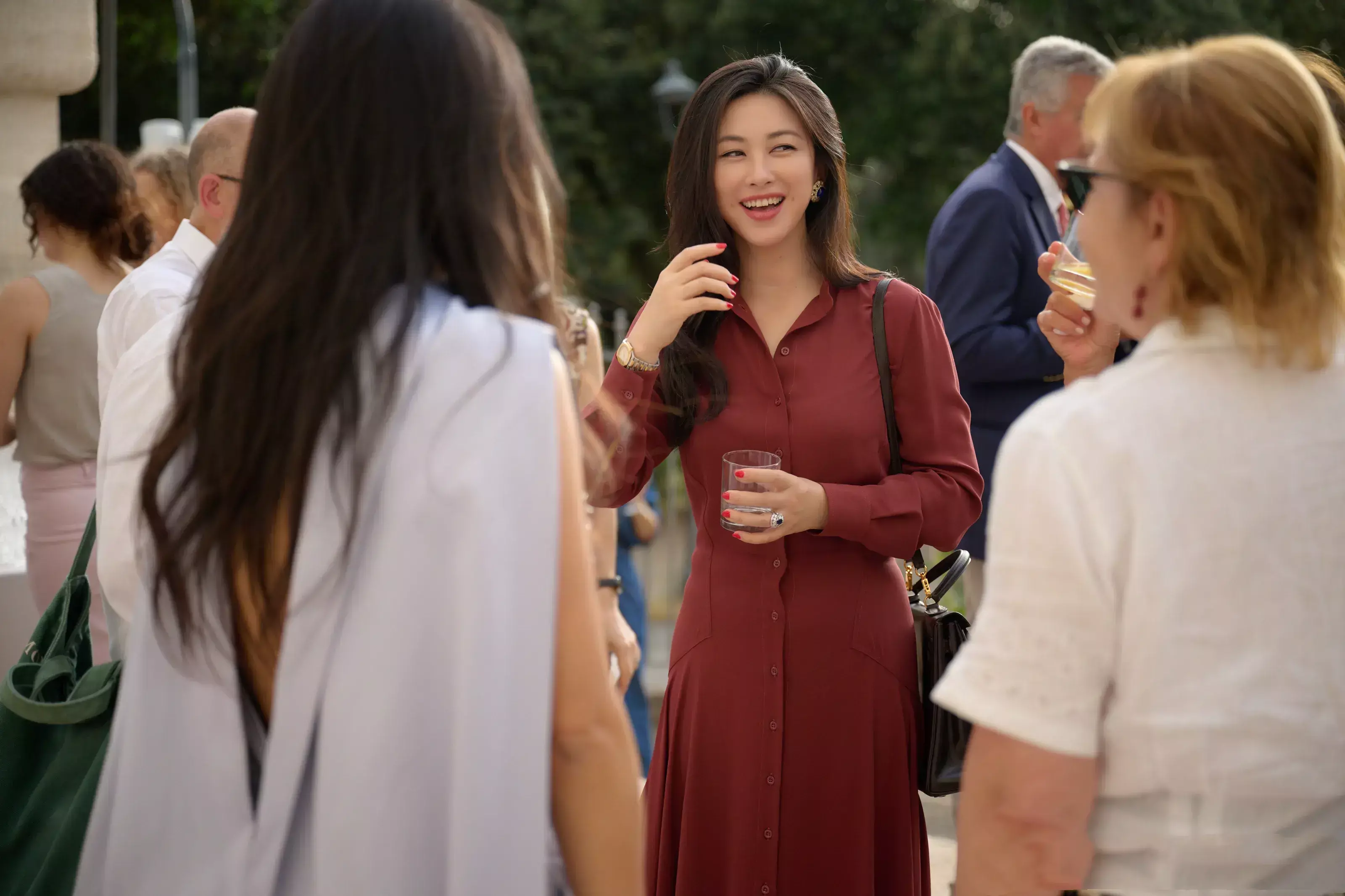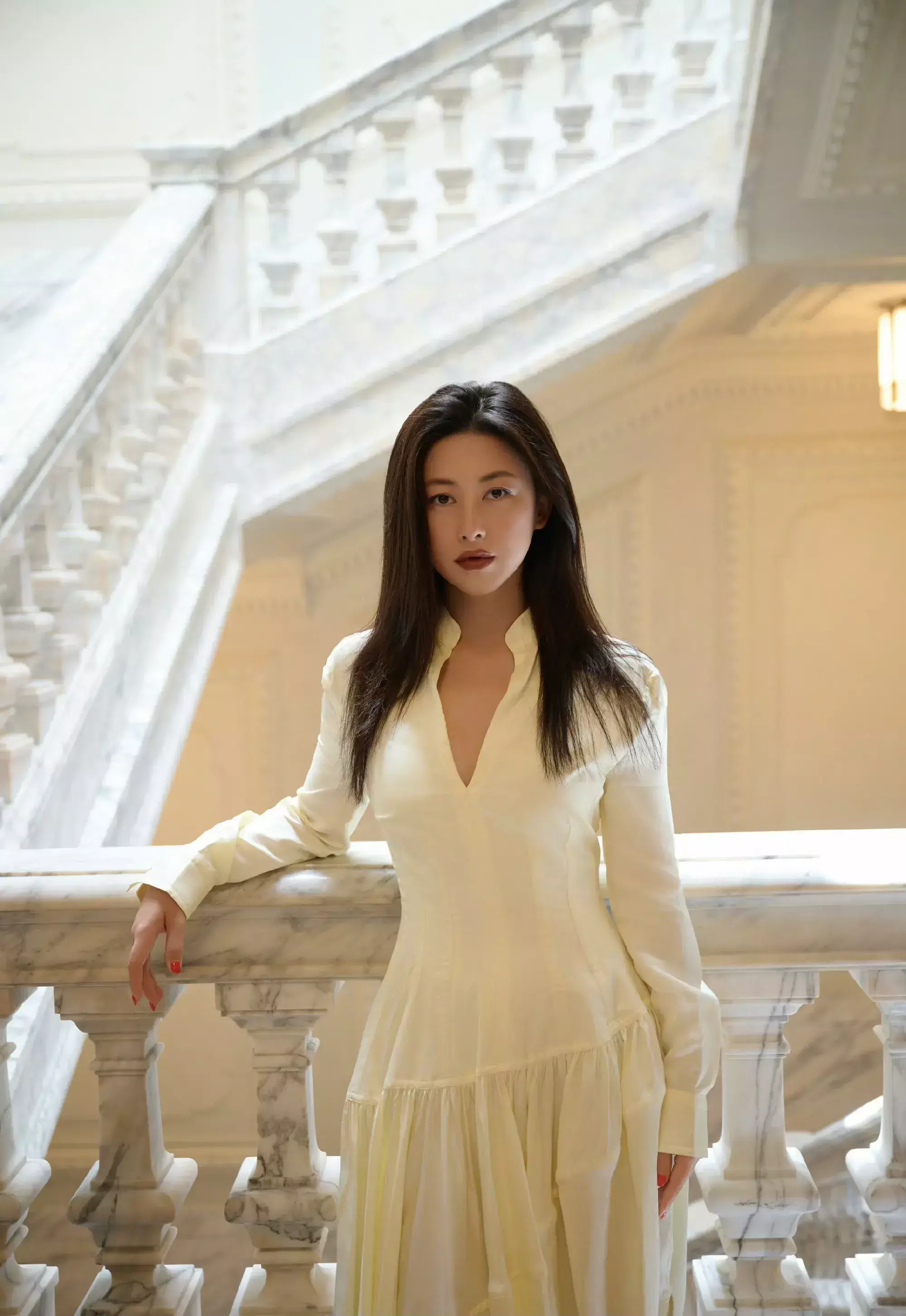 朱珠善于发现自己的优点并放大,她整个人充满自信的魅力,倾向于选择V领设计,以展示迷人的锁骨。