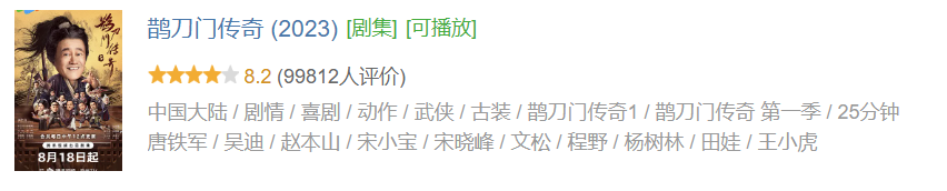 作品上当然也不局限于悬疑题材,《人世间》全程催泪,《父辈的荣耀》也边追边哭,还有承包了无数人笑点的《鹊刀门传奇》。