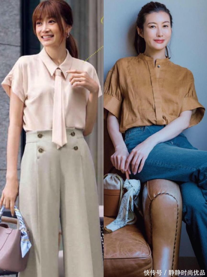 通勤的造型里面怎么能够少得了衬衫呢,在夏天自然要穿短袖衬衫,这个时候难免会暴露手臂上有拜拜肉的小缺点,这时就可以选择蝙蝠袖的衬衫。