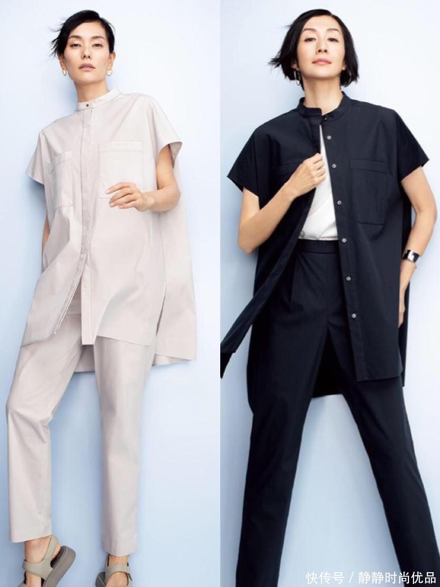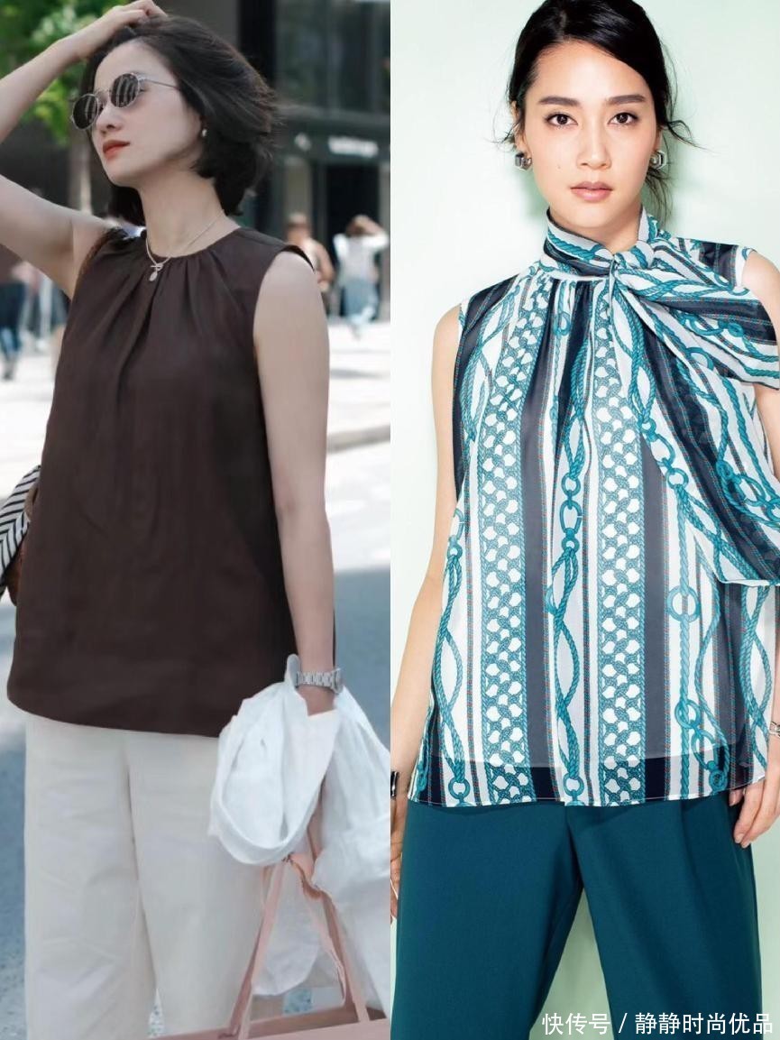 对于中年女人而言,尤其是经常在办公久坐的女性,他们身材或多或少有一些不完美,尤其是肩颈处的线条,这时就可以利用一片式的飞袖上衣进行修饰。