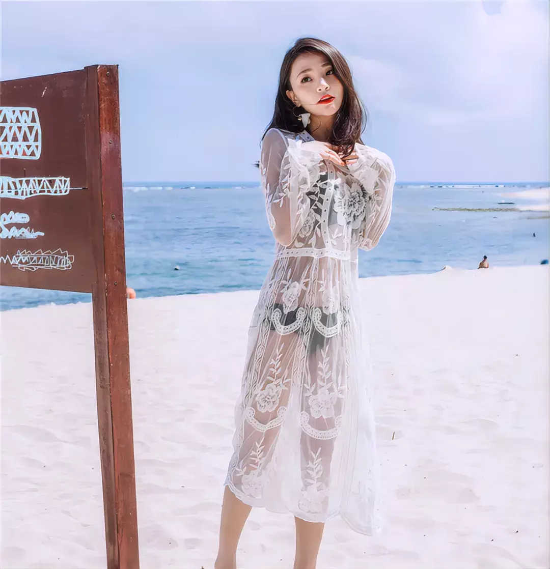 海滩罩衫是微胖女生夏日海边穿搭的绝佳拍档。
