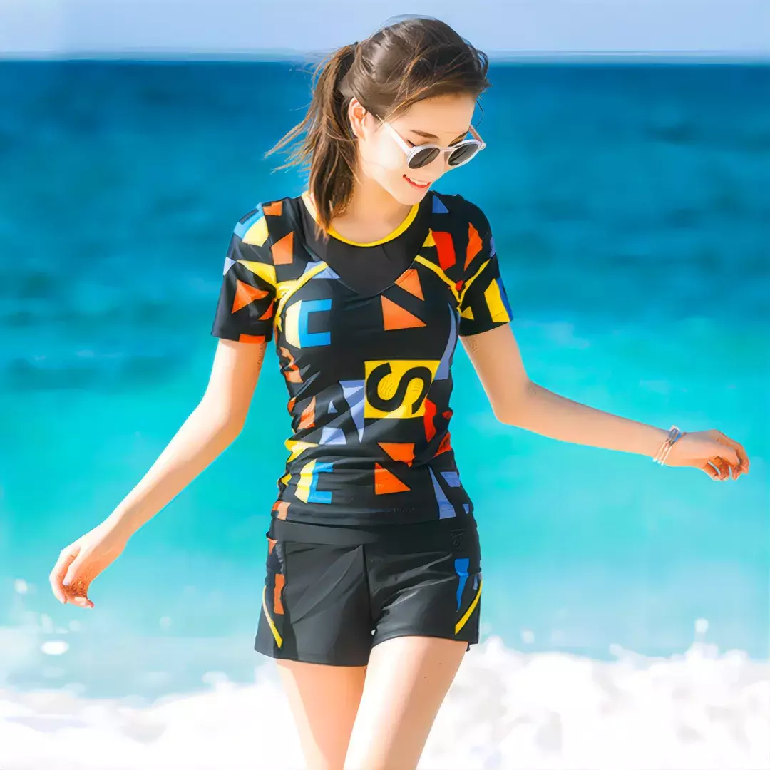 高腰泳裤不仅能够有效遮挡腰部和腹部,还能提升腰线,展现优美曲线;而宽松的T恤则能随意搭配,无论是简约的纯色还是有趣的印花,都能让你在海边成为一道独特的风景线。