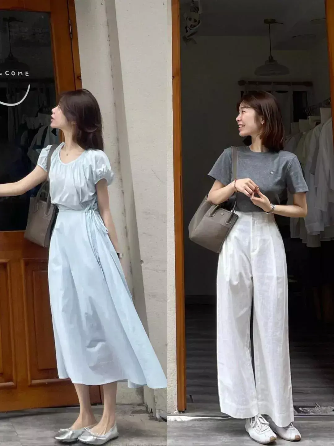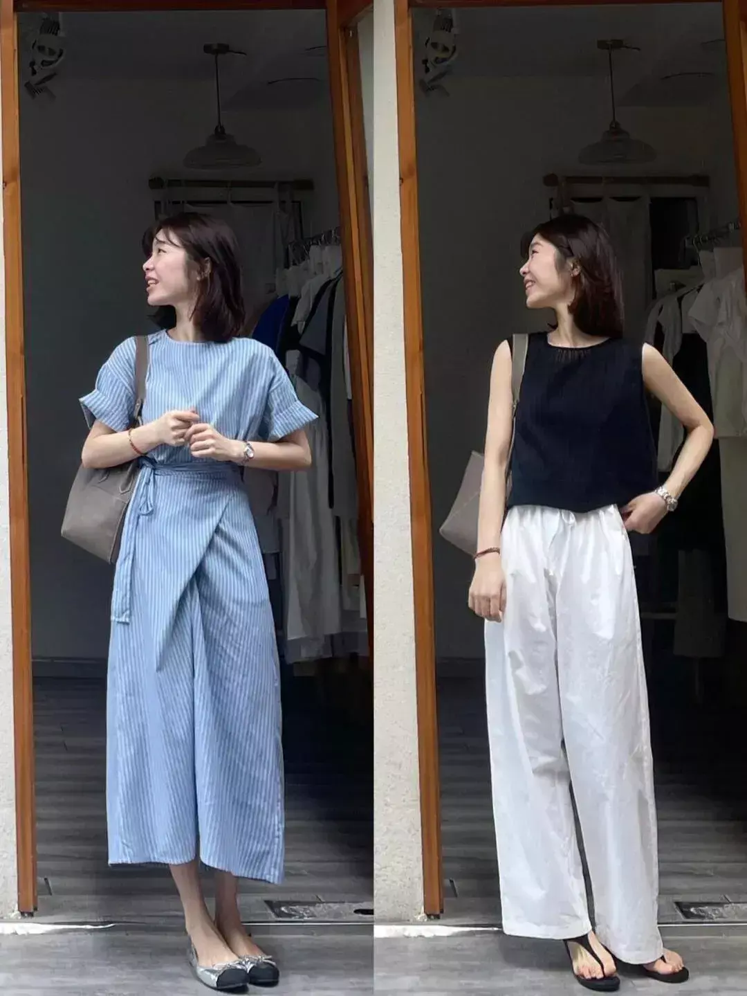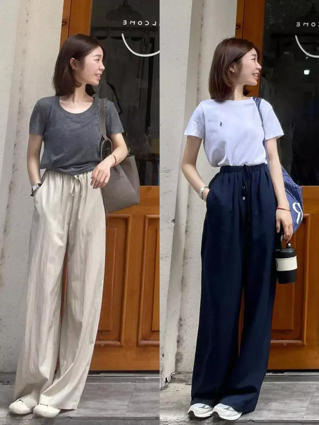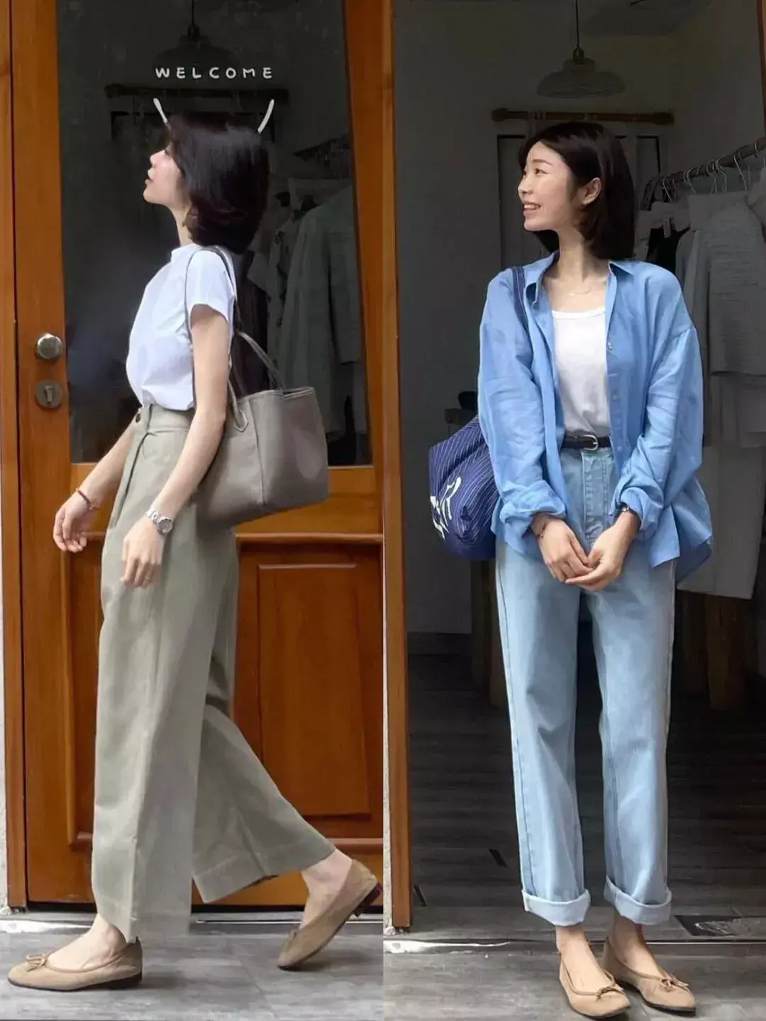 如果平时的穿衣打扮更加偏向于一些简约利落的中性风,随性风的话。各种各样的高腰阔腿裤,直筒裤也能够代替裙装,展现出一种随性气质,而且相对来说也会更加的方便日常一些。