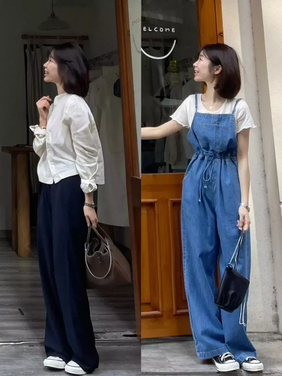 过于硬朗挺阔的牛仔面料固然能够更好的修饰我们的身材线条,但是也容易有闷热感,反而选择一些偏轻薄的软牛仔材质,更适合夏天旅游这一种,深蓝色的牛仔背带裤,面料上就相对要柔软轻薄一些,搭配上白T恤之后简约减龄,穿着起来也比较舒适大方。
