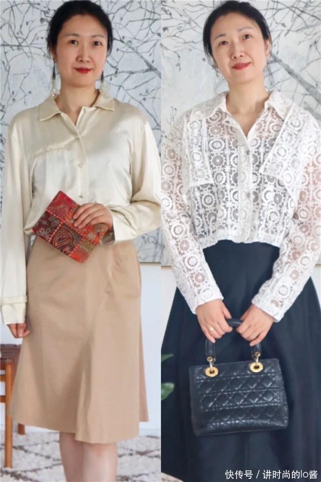 如果想要打造出更加高级的造型,那就比较建议大家多尝试选用了绸缎面材质,或者是蕾丝材质的上衣。前者能够打造出贵气十足的风格,而后者则能增添少女感,能打造出减龄的效果。
