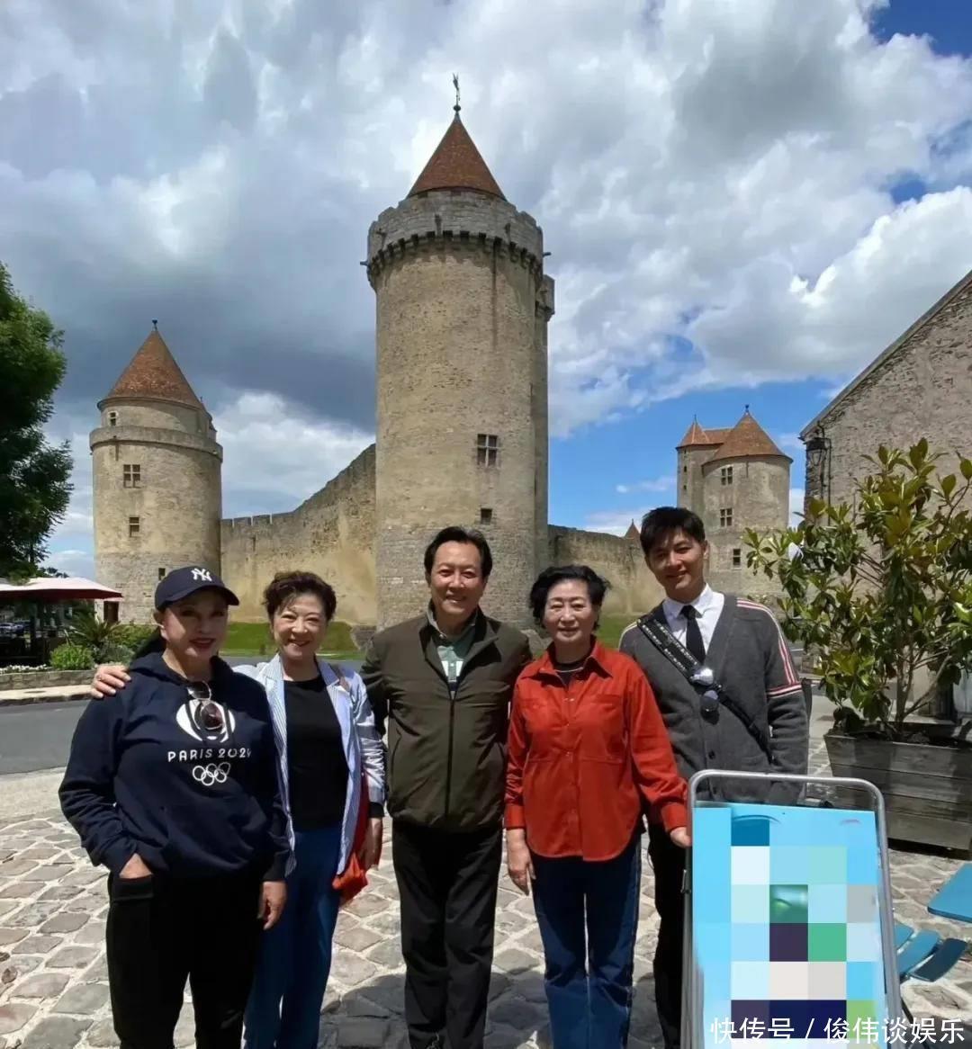 在这张照片中,刘晓庆的穿搭充满时尚感,她选择了简约而典雅的黑色外套搭配休闲裤,彰显出她的独特气质。王馥荔则以蓝上衣搭配黑色裤子,优雅而不失活力,她的卷发更是增添了几分女人味。唐国强则身着黑色外套与深色裤子,显得沉稳而内敛。三人虽然风格各异,但都散发着各自独特的魅力,共同在这古老的城堡前留下了美好的回忆。