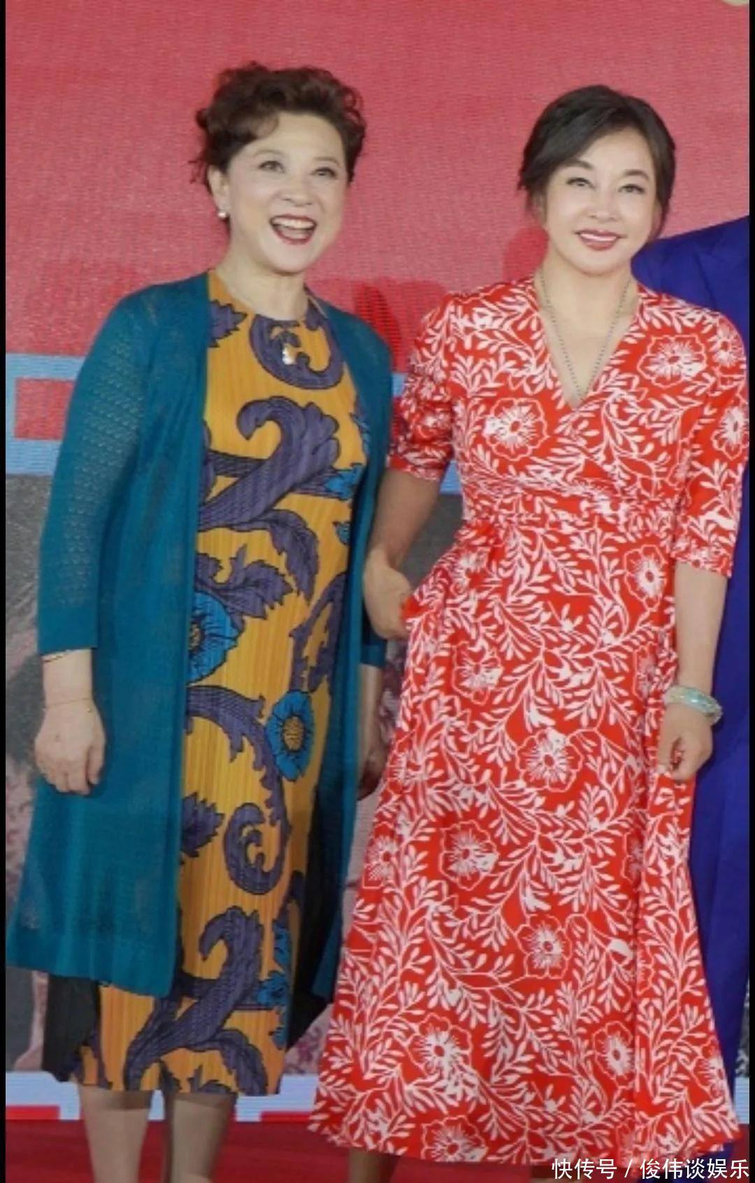 在这张照片中,刘晓庆以红色花朵连衣裙亮相,白色运动鞋的点缀增添了时尚感,整体造型既优雅又不失活力。而王馥荔则选择了黄色与蓝色相间的长裙,搭配绿色开衫,展现出一种温婉而内敛的气质。两位女星的穿搭各具特色,但都展现了她们的优雅风采,仿佛在参加一场盛大的活动,光彩照人。