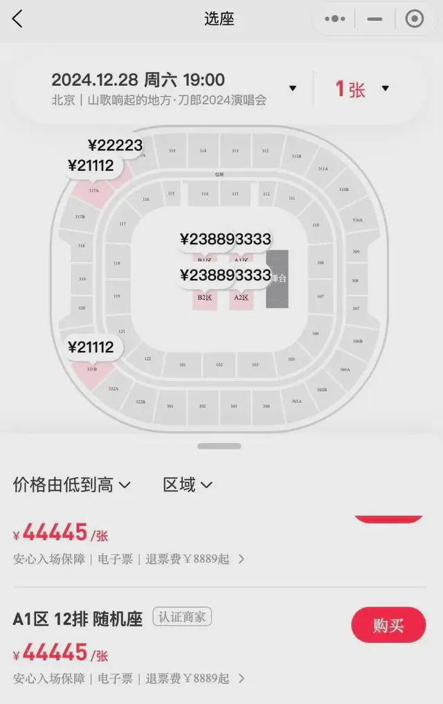 二级市场,刀郎北京场的看台票一度被炒到近5万元一张。“刘哥票务AAA”忙得回不过来微信,在嘈杂的背景声里用语音仓促回复:“别挑座了别挑座了,一万起步,有就不错了!”“前排?劝你别买,贵得要死。”
