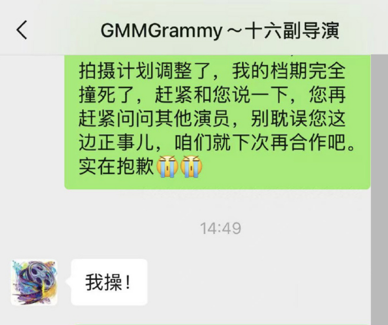 颜十六听了瞬间爆粗,让星星再争取一下,因为“实在换不了人”,还想给他买机票过来先定妆。