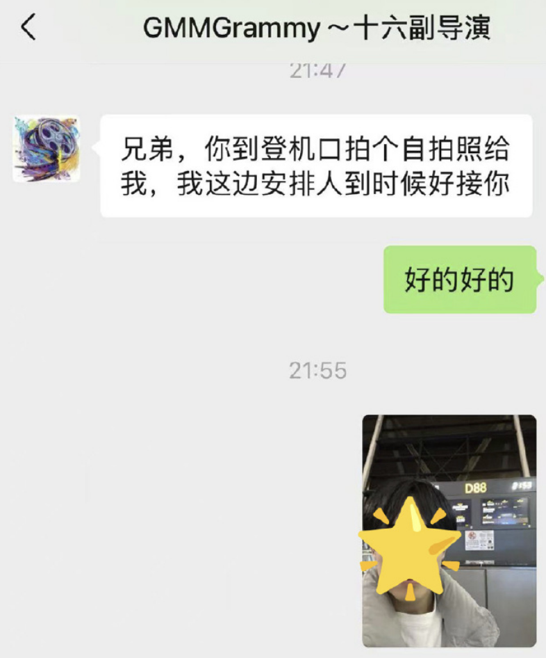 凌晨3点多,星星落地曼谷机场,颜十六又让他发自拍,还让他“等着就可以了”。