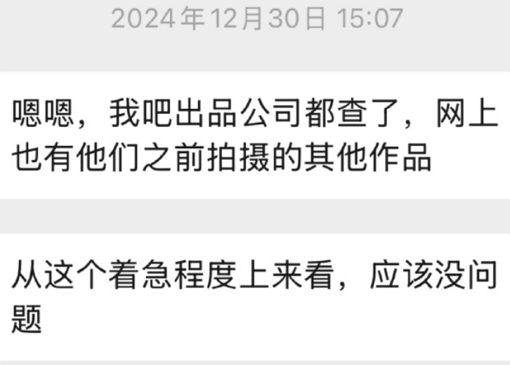 颜十六的态度让星星的担忧缓和了一些,为了确保更稳妥,他又把出品公司的信息都查了,觉得应该不会有啥安全问题,才决定进组。