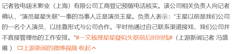 虽然也挂靠了公司,但说白了就是个人演员,需要自己找活。事件扩散后,星星挂靠的翃禾影业(上海)有限公司也发声,说公司并没有管理他的工作安排。