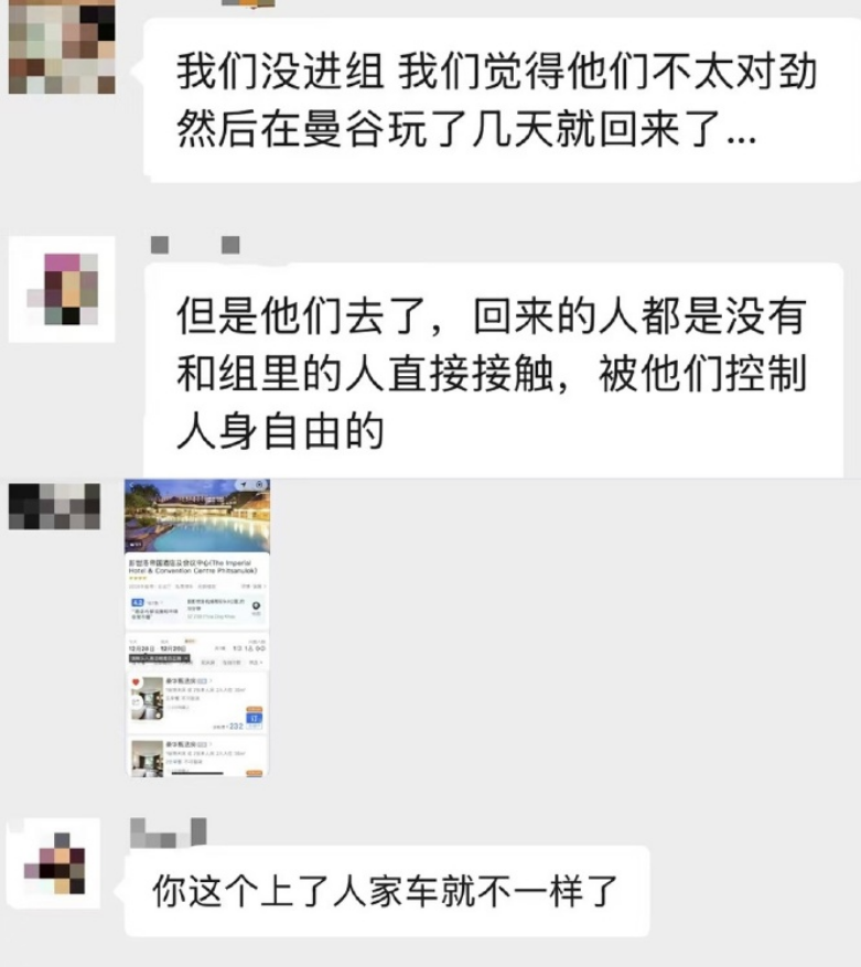有一个叫徐大久的“受害者”在曼谷录制视频,说自己也有相同经历,“刚从人贩子手上逃出来”,之所以没上车,是因为下机之后让泰国朋友查到这个酒店离机场有5小时的路程,觉得不对劲,所以借口偷溜了。