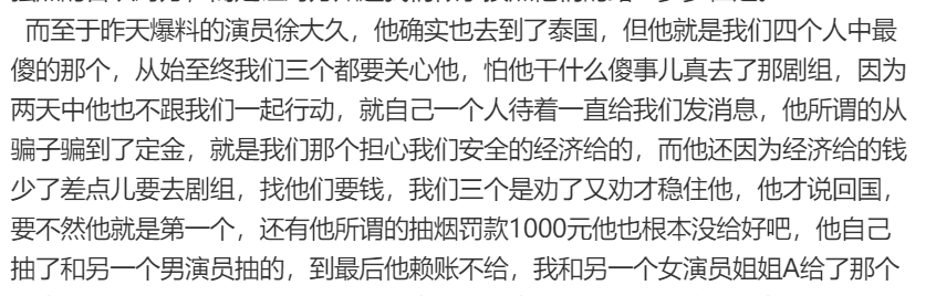 但他第二天就被一起去泰国的演员“锤了”,说他虽然也去了泰国,但是最傻的一个,从始至终都要别人关心。