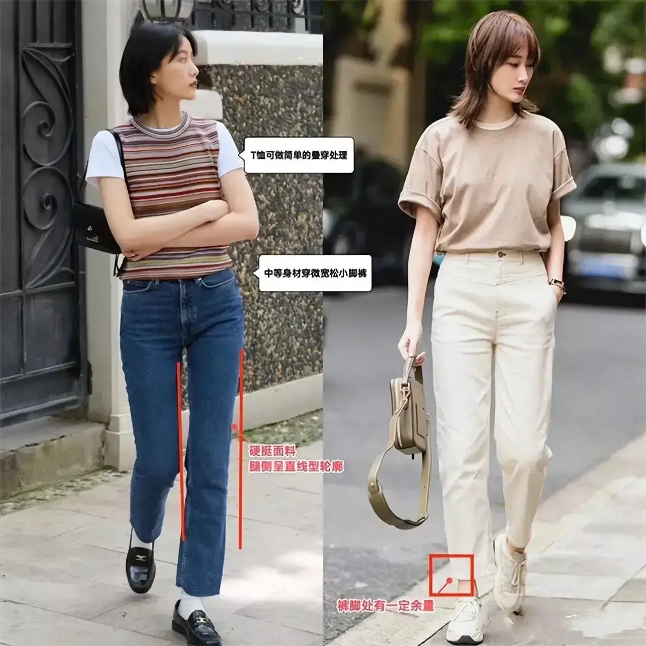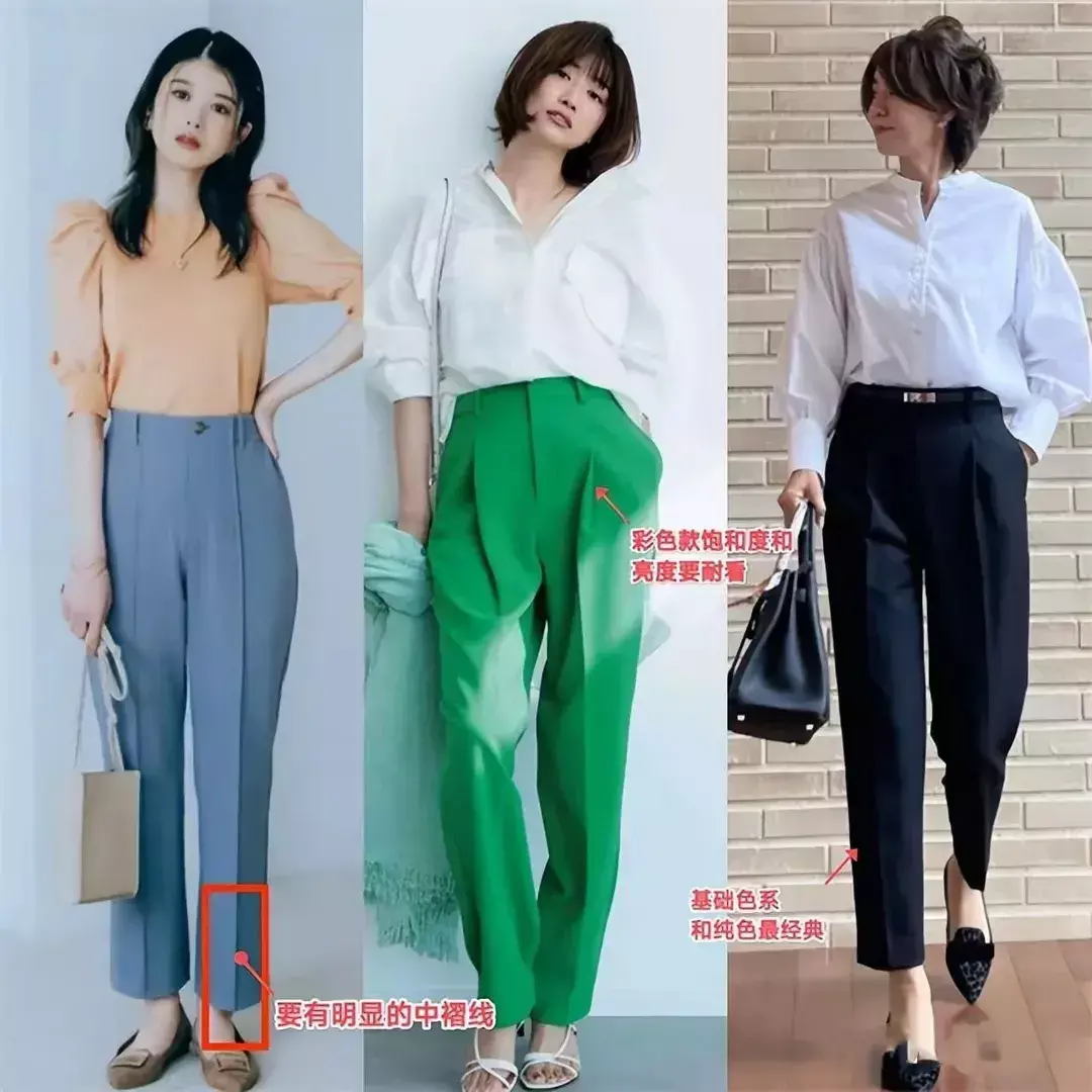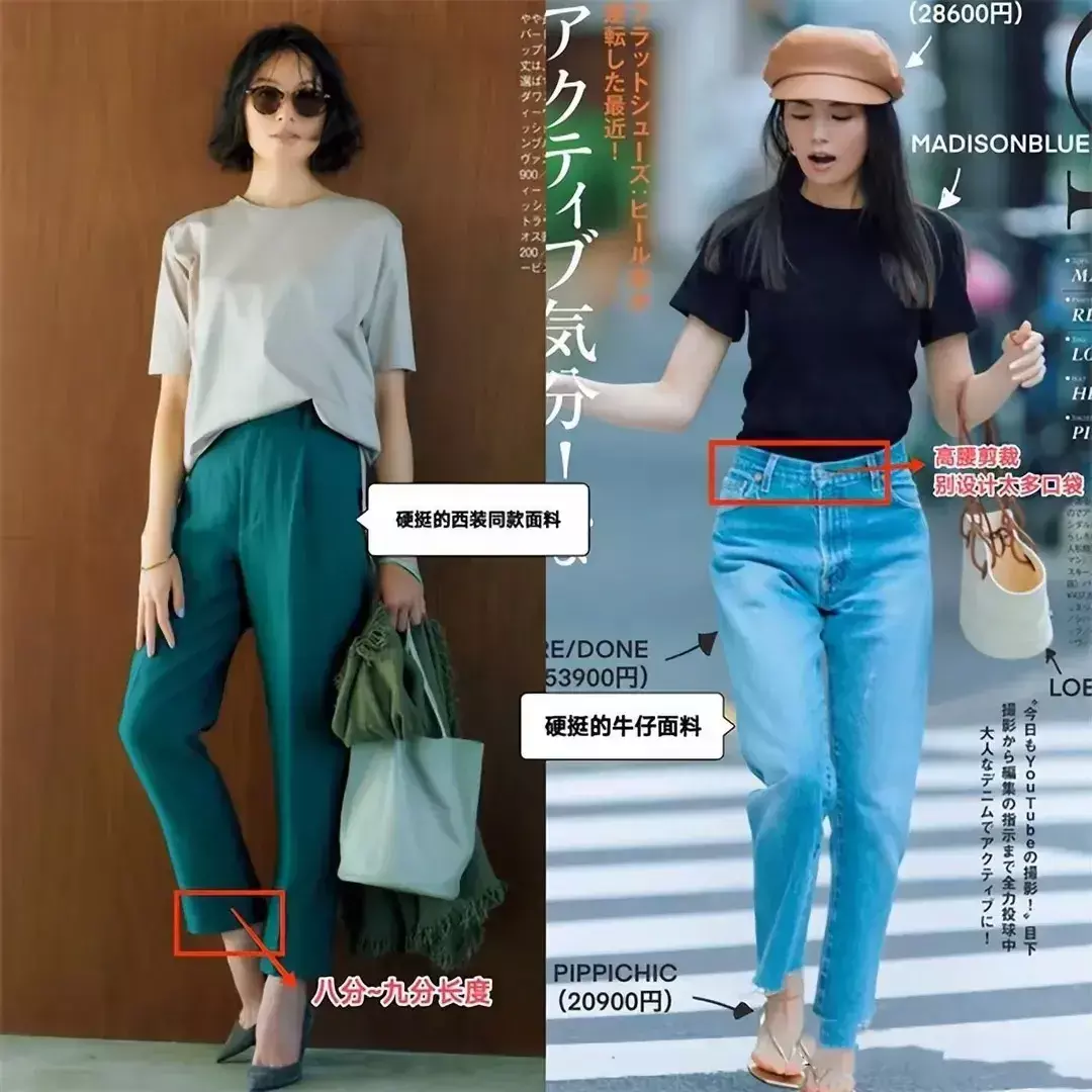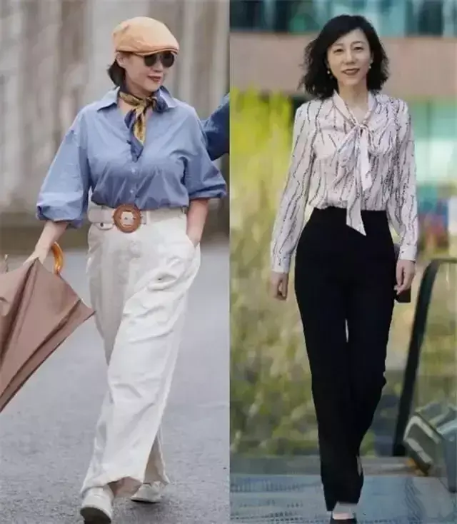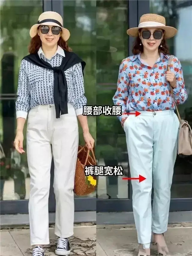 大家看下面的穿衣对比,就有一个很好的画面了,例如到了四五十岁,毕竟身材保持的很好的人是占少数的,所以我们需要像烟管裤这样的裤型,有高腰收腰的设计,而且裤腿也比较宽松,遮肉显瘦的功能真的是不在话下。