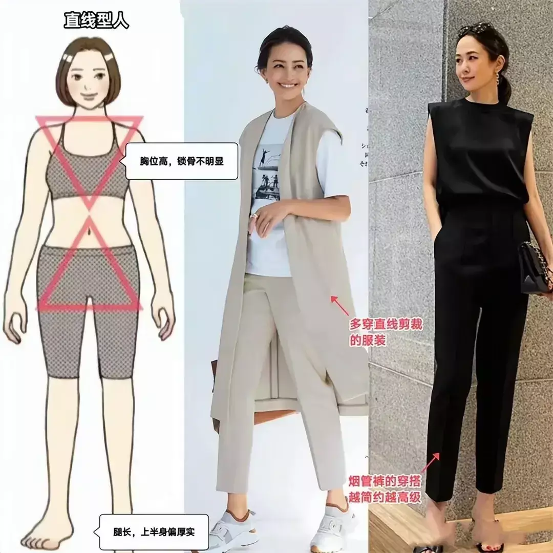 直线型人最直接的理解就是H型身材,这类型的身材腿比较长,但是上半身也很宽,看上去骨架有点大。