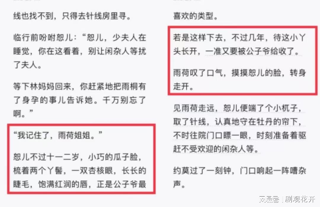 原著里这样写道:恕儿不过十一二岁,小巧的瓜子脸,梳着两个丫髻,一双杏核眼,长长的睫毛,饱满红润的唇,正是公子爷喜欢的类型。