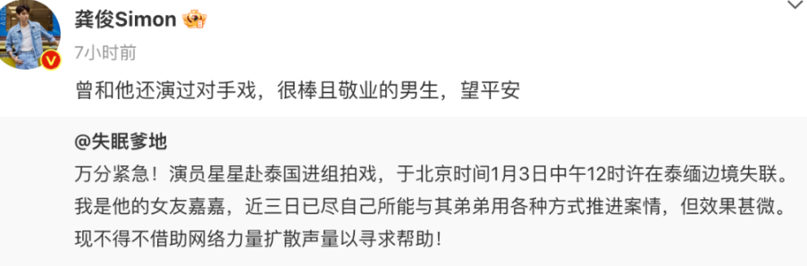 失联后,王星的女友迅速报警,但人不在境内,派出所无法受理,之后女友又迅速联系大使馆,大使馆表示首先要确定人在泰国境内,并且泰国警方立案,大使馆才能受理,并且得是直系亲属在当地报警才行。