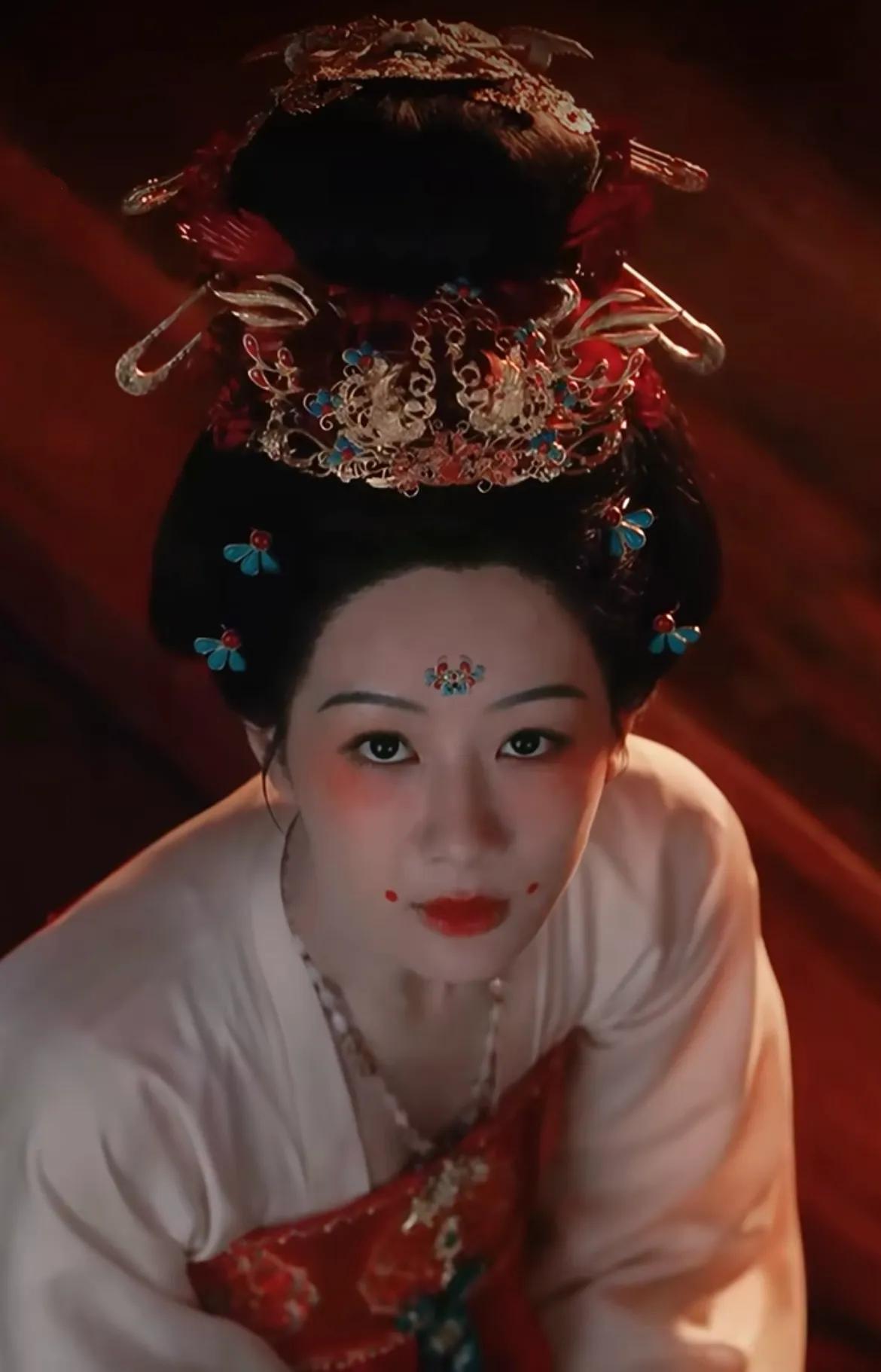 杨紫没有刻意改变,葡萄大眼、身姿挺拔,且本身就微胖型,盛唐的优雅富丽,又被她自然诠释出来。