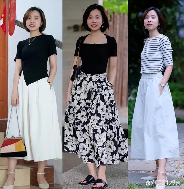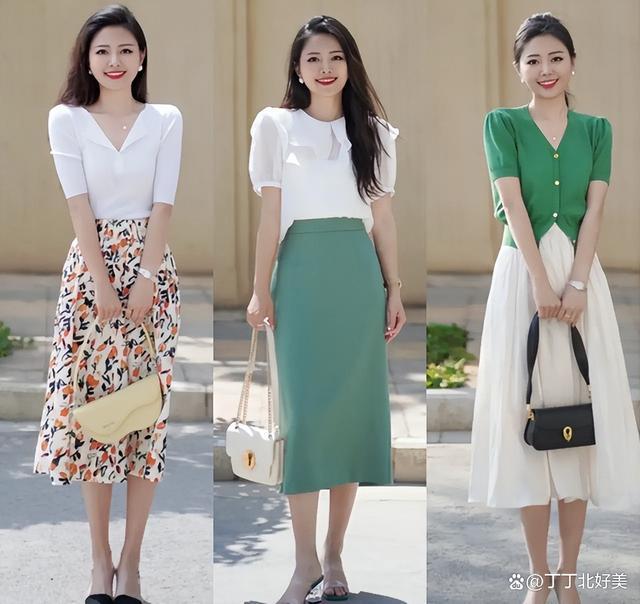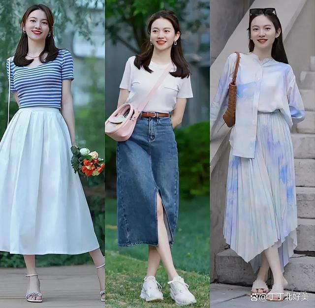 除了露手臂之外,咱们还可以去尝试一些露腿的穿搭,比如你在穿短裤短裙时,都可以把自己的双腿曲线露出来,这样的穿搭方式也相当清爽,尤其是过膝裙配高跟鞋露出脚踝也很增高显瘦。