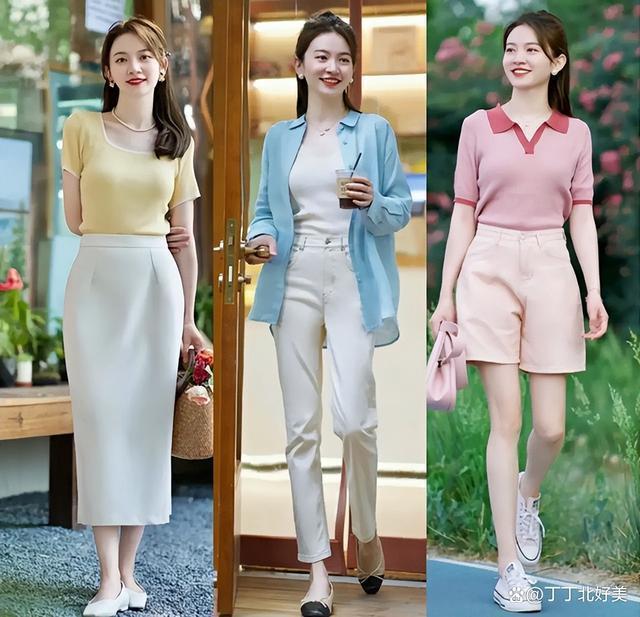 比如说,在夏天时,我们可以都去尝试这种相对比较清爽的蓝色,白色,用这些衣服来提亮我们的皮肤,自然也可以让你的气质变得年轻,而且在穿这些时髦色彩的时候,我们还可以加入一些简单的印花哦。